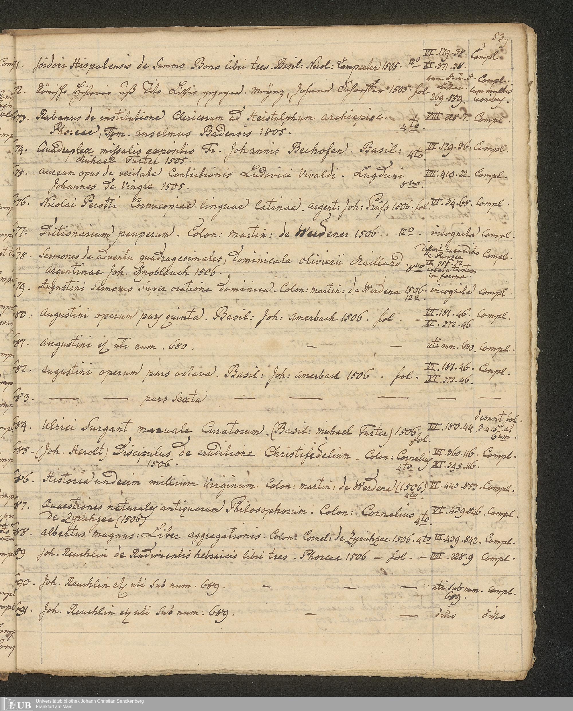Ms. Ff. G. Kloß III.7 - Chronologisches Verzeichnis der Drucke 1468 - 1540