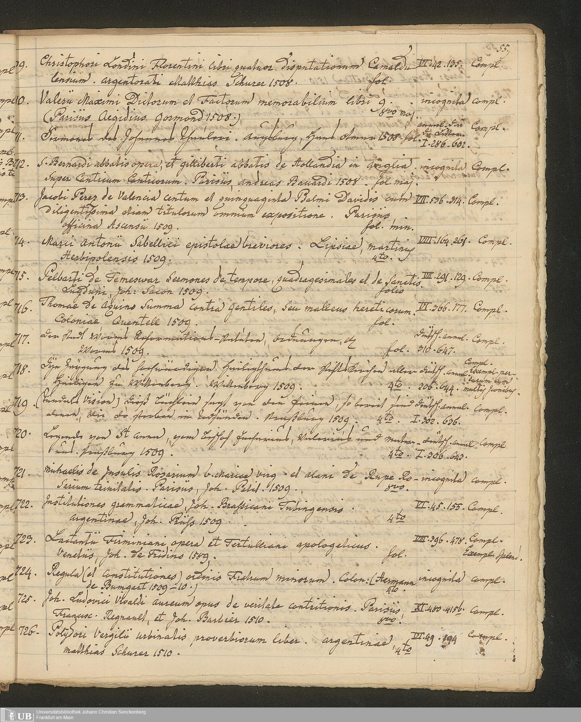 Ms. Ff. G. Kloß III.7 - Chronologisches Verzeichnis der Drucke 1468 - 1540