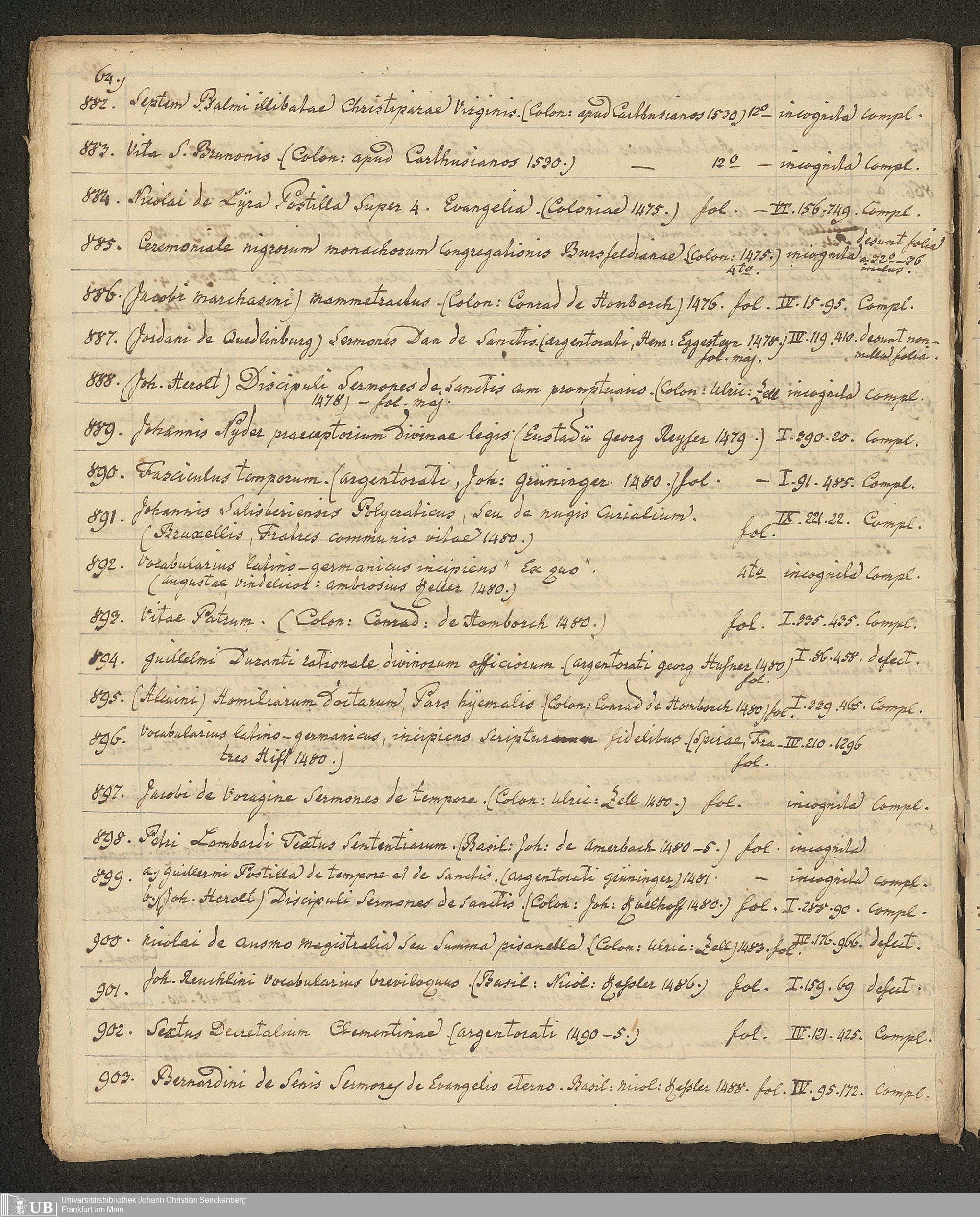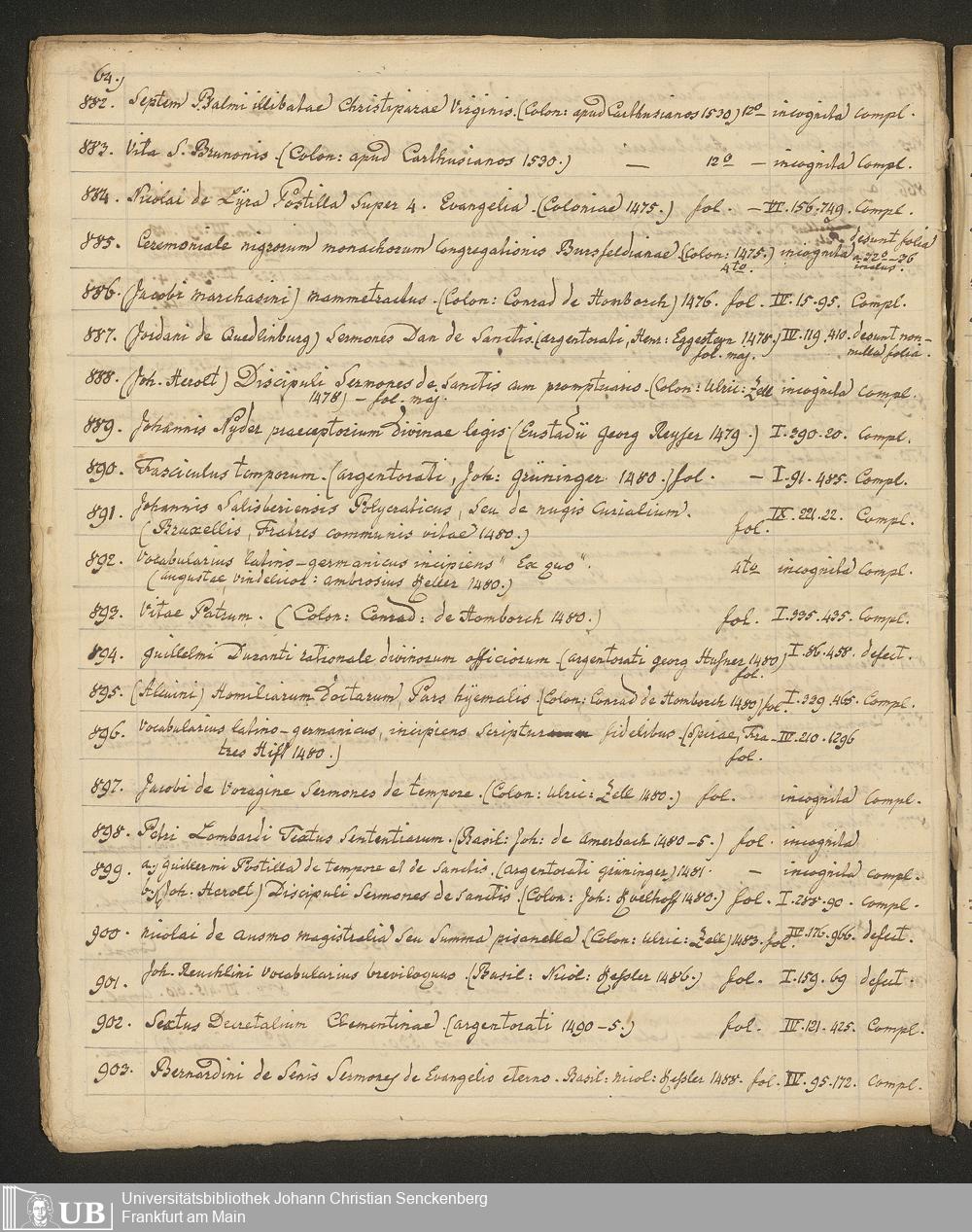 Ms. Ff. G. Kloß III.7 - Chronologisches Verzeichnis der Drucke 1468 - 1540