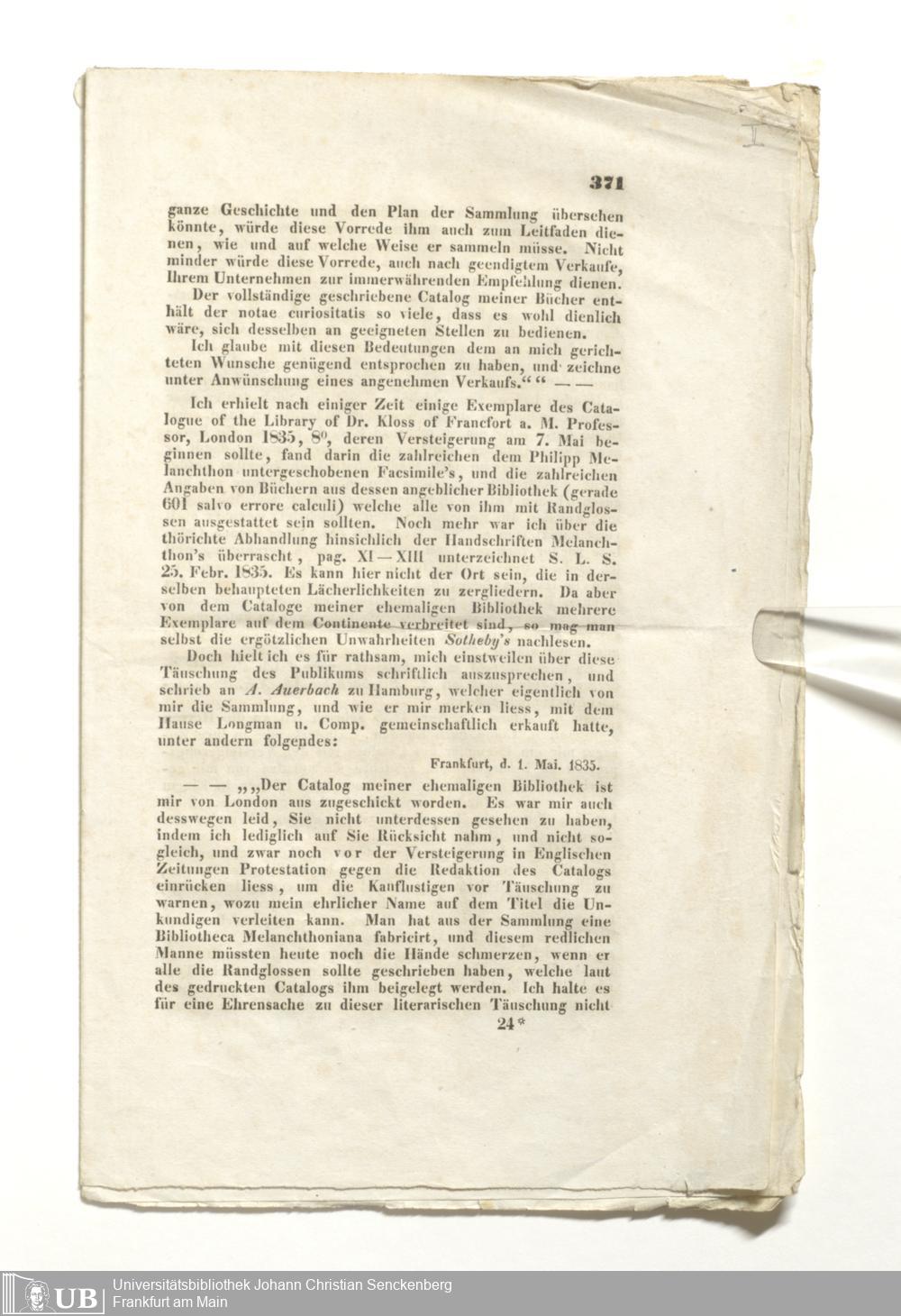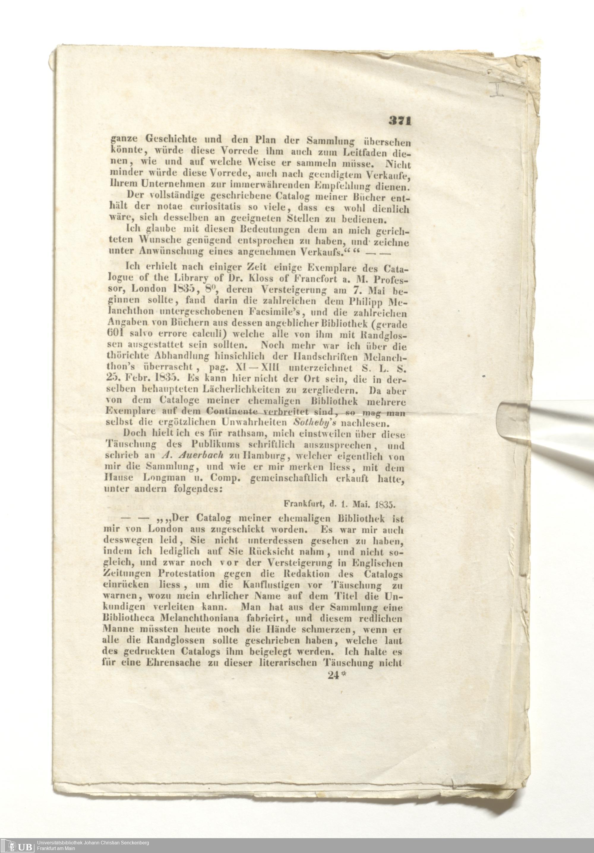 Ms. Ff. G. Kloß III.1 - Catalogus librorum palaeotyporum et manuscriptorum Georgii Klossii