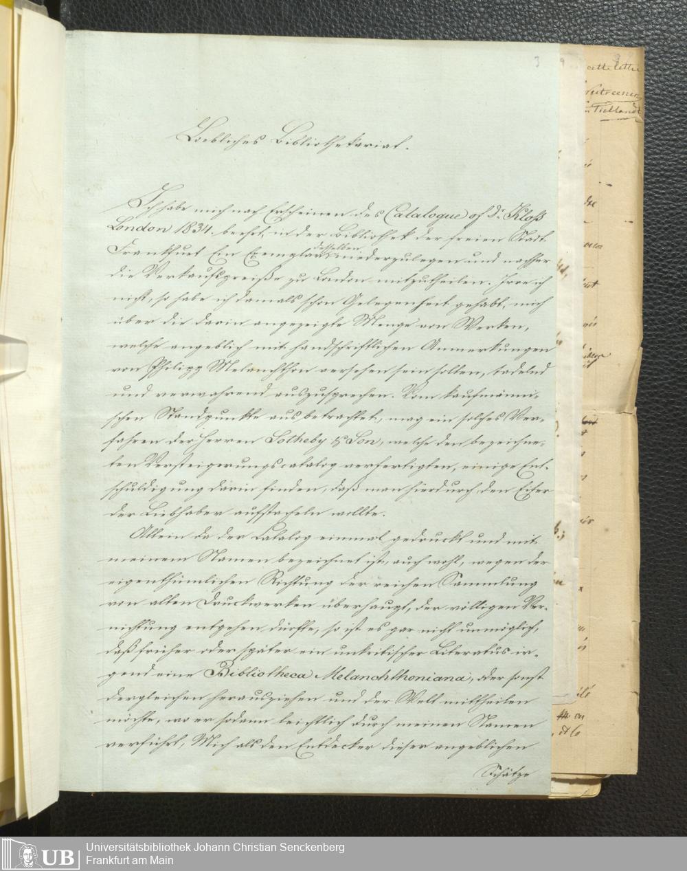 Ms. Ff. G. Kloß III.1 - Catalogus librorum palaeotyporum et manuscriptorum Georgii Klossii