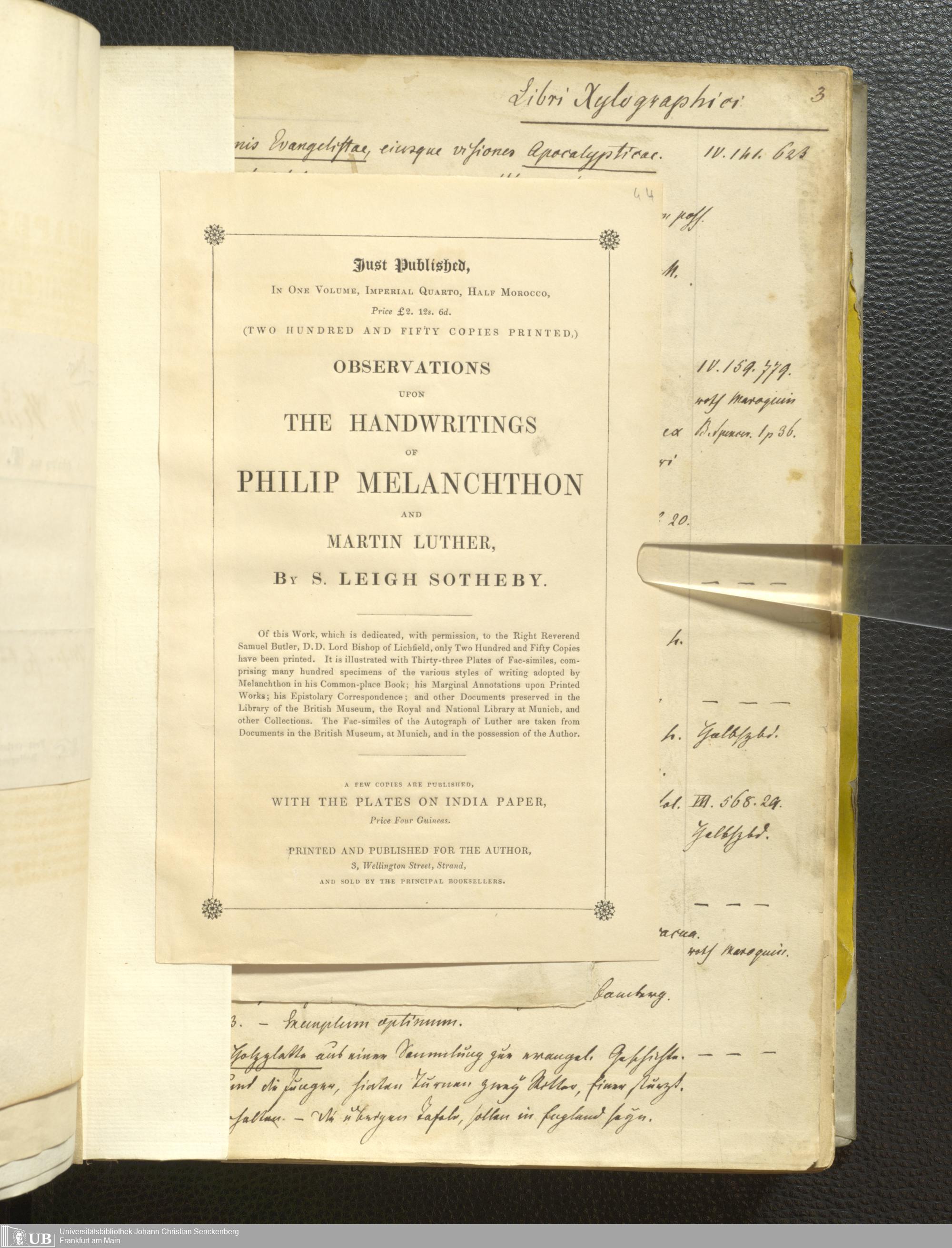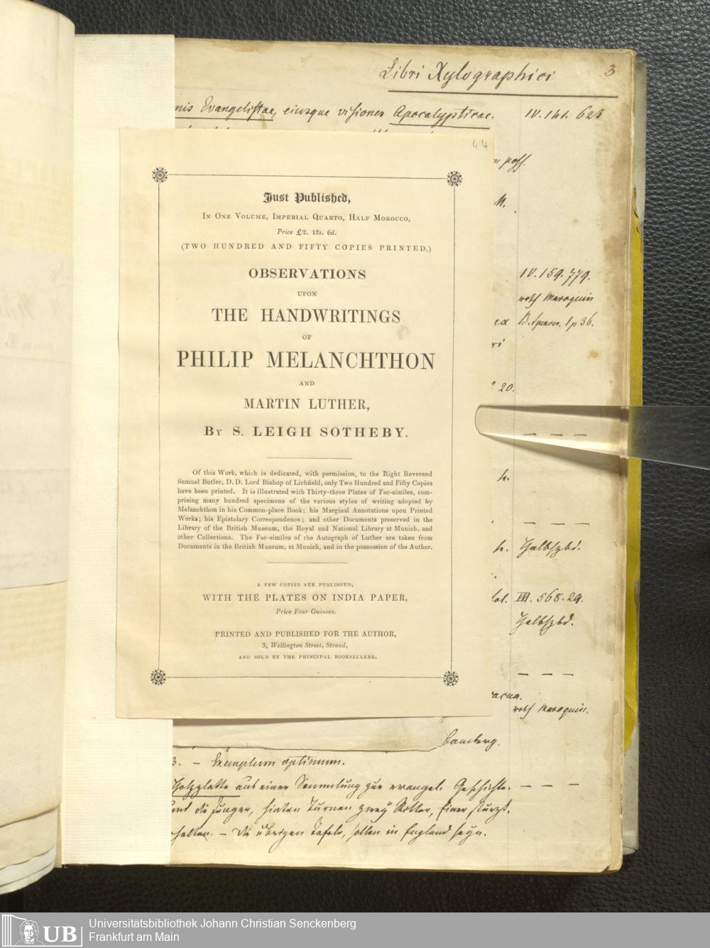 Ms. Ff. G. Kloß III.1 - Catalogus librorum palaeotyporum et manuscriptorum Georgii Klossii