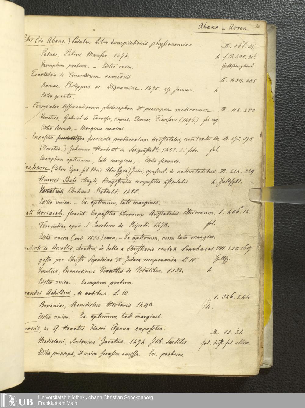 Ms. Ff. G. Kloß III.1 - Catalogus librorum palaeotyporum et manuscriptorum Georgii Klossii