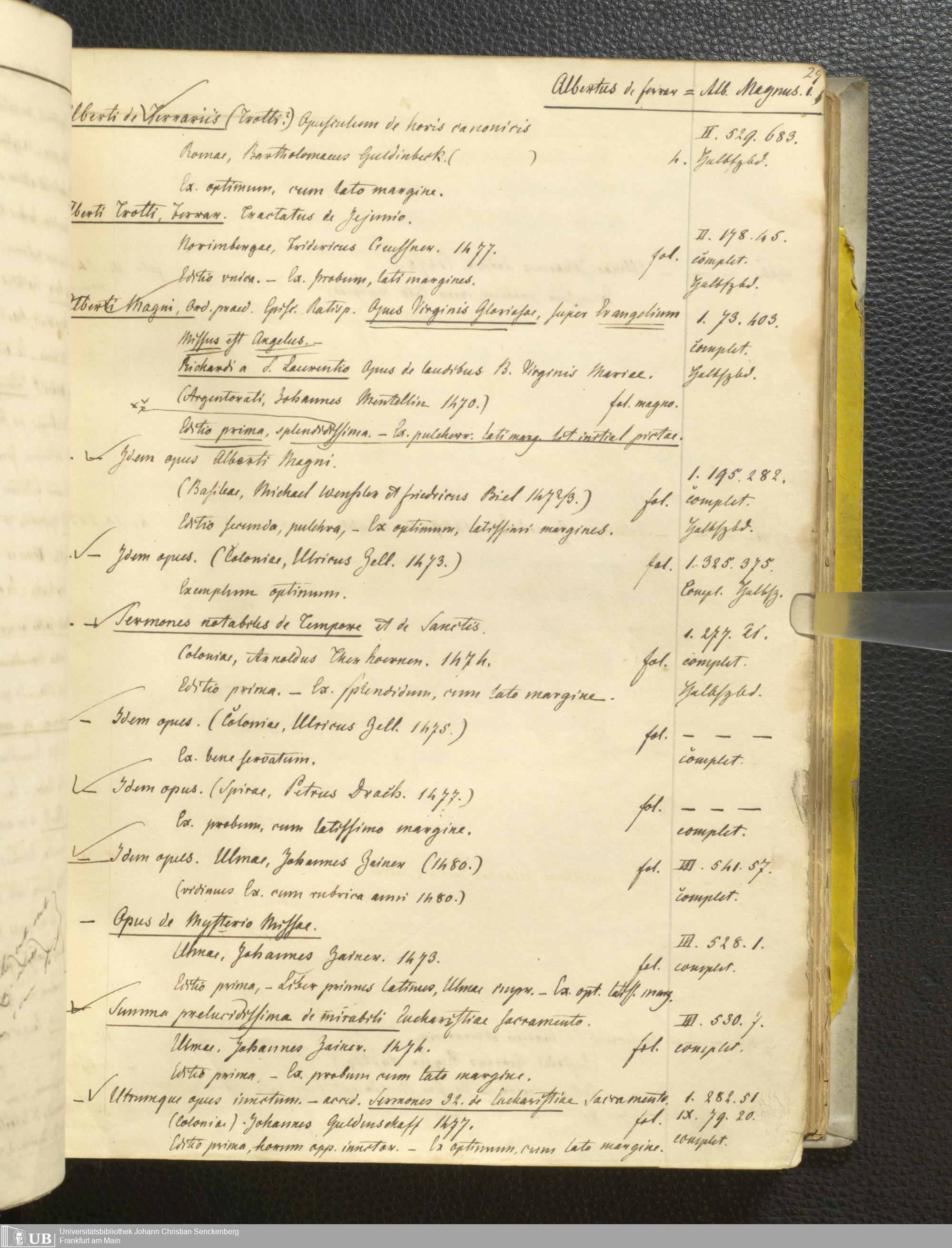 Ms. Ff. G. Kloß III.1 - Catalogus librorum palaeotyporum et manuscriptorum Georgii Klossii