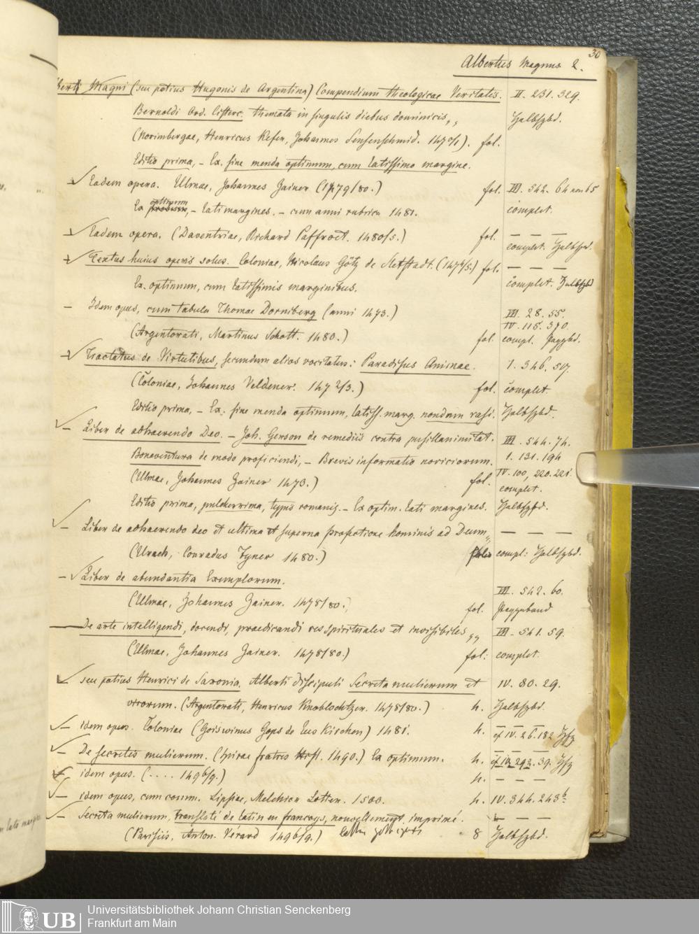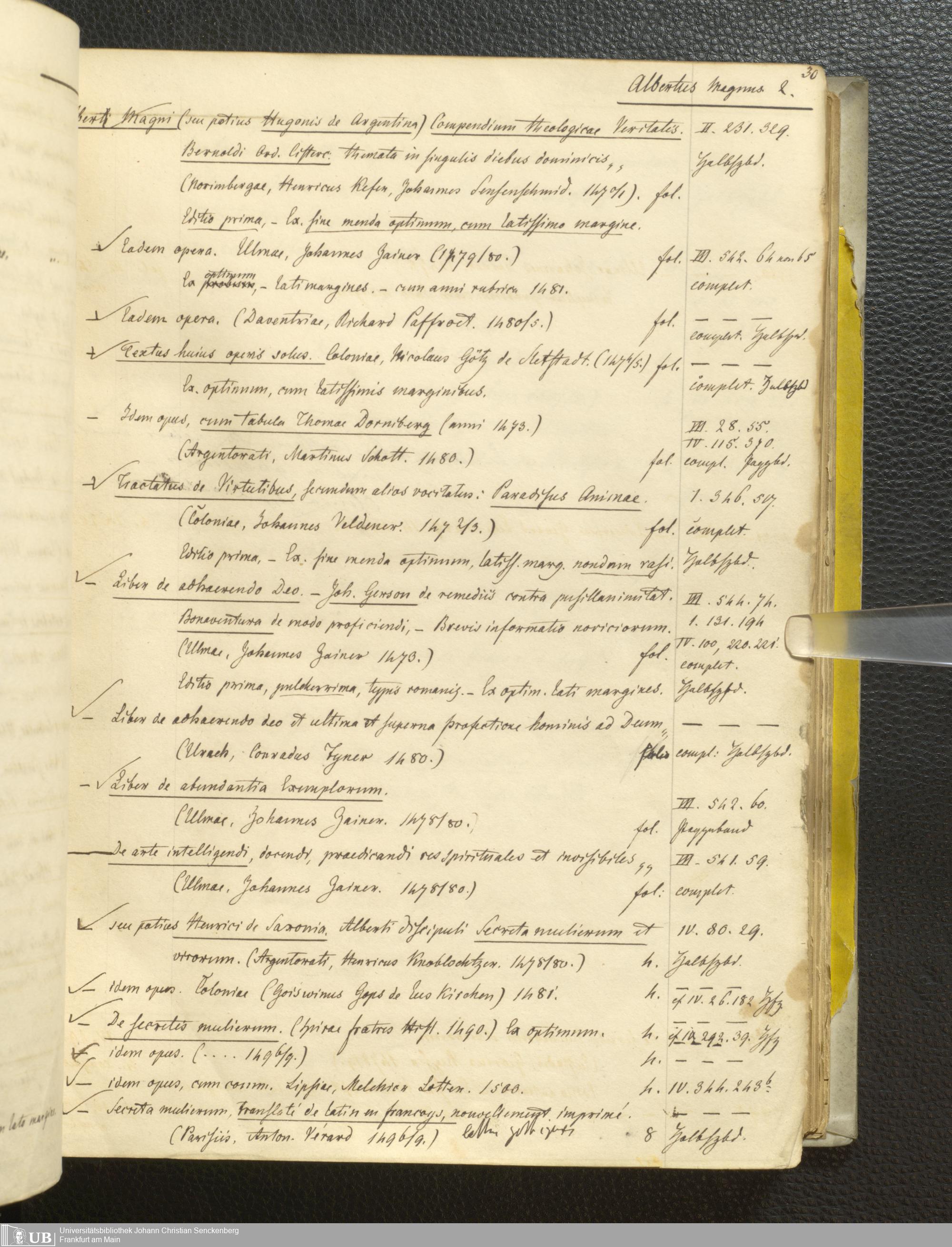 Ms. Ff. G. Kloß III.1 - Catalogus librorum palaeotyporum et manuscriptorum Georgii Klossii