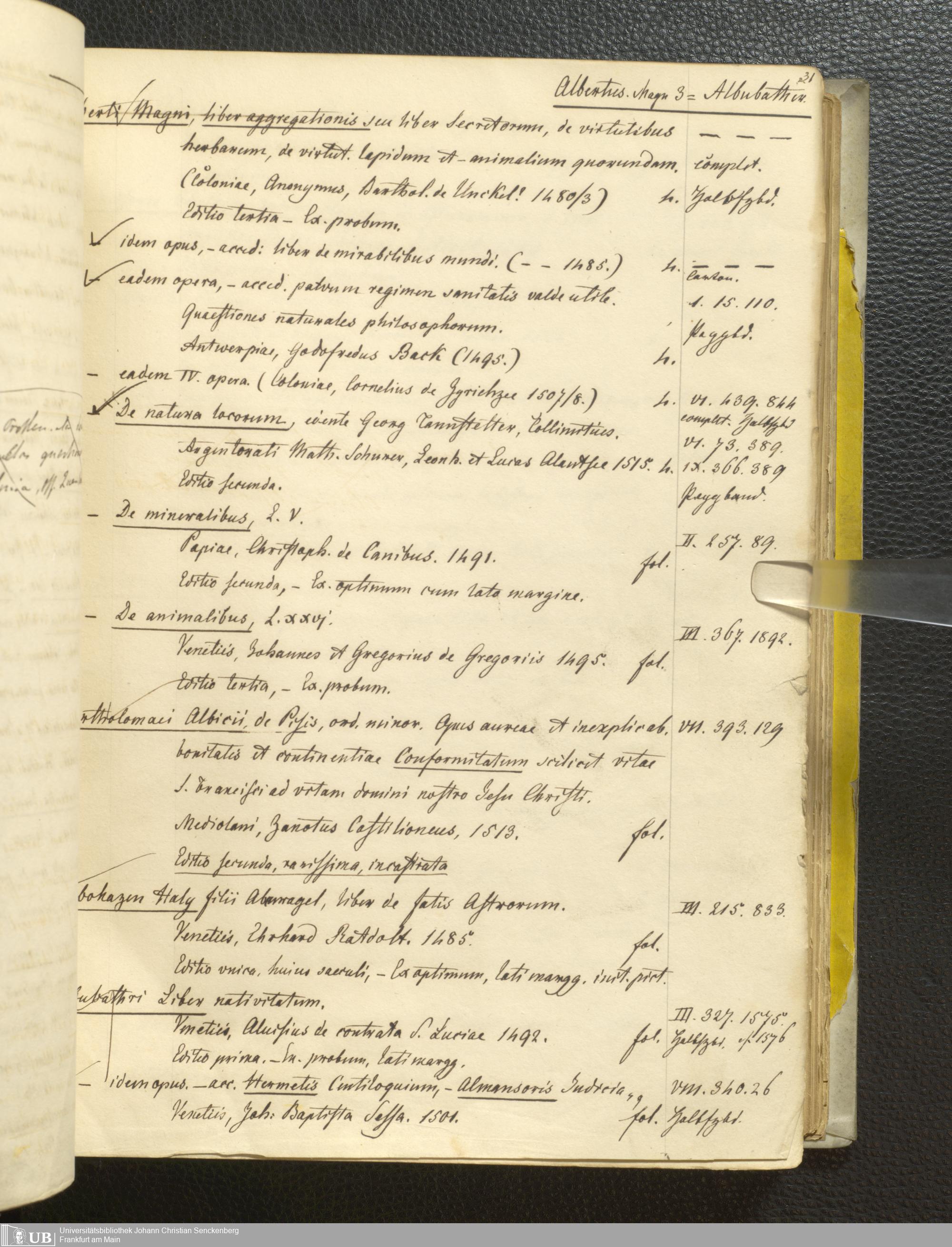 Ms. Ff. G. Kloß III.1 - Catalogus librorum palaeotyporum et manuscriptorum Georgii Klossii