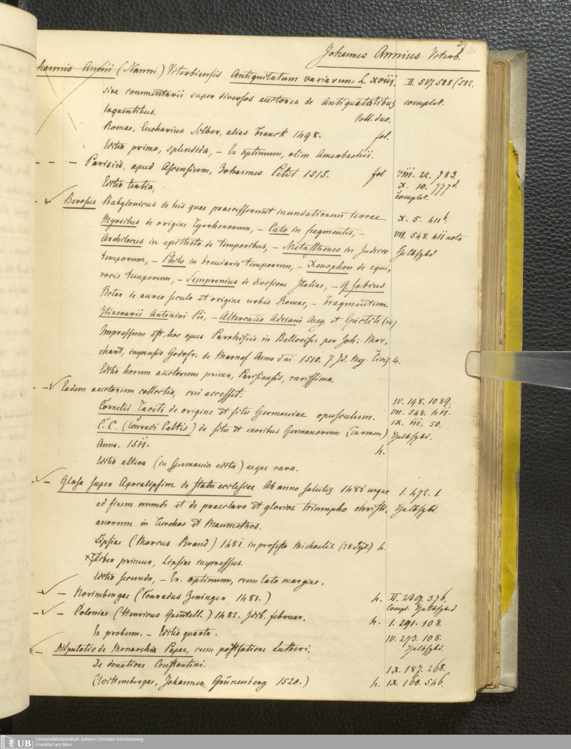 Ms. Ff. G. Kloß III.1 - Catalogus librorum palaeotyporum et manuscriptorum Georgii Klossii