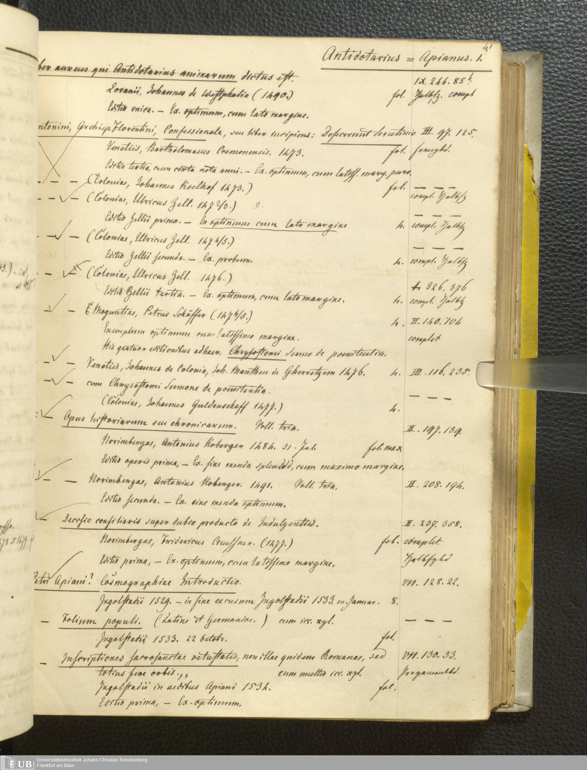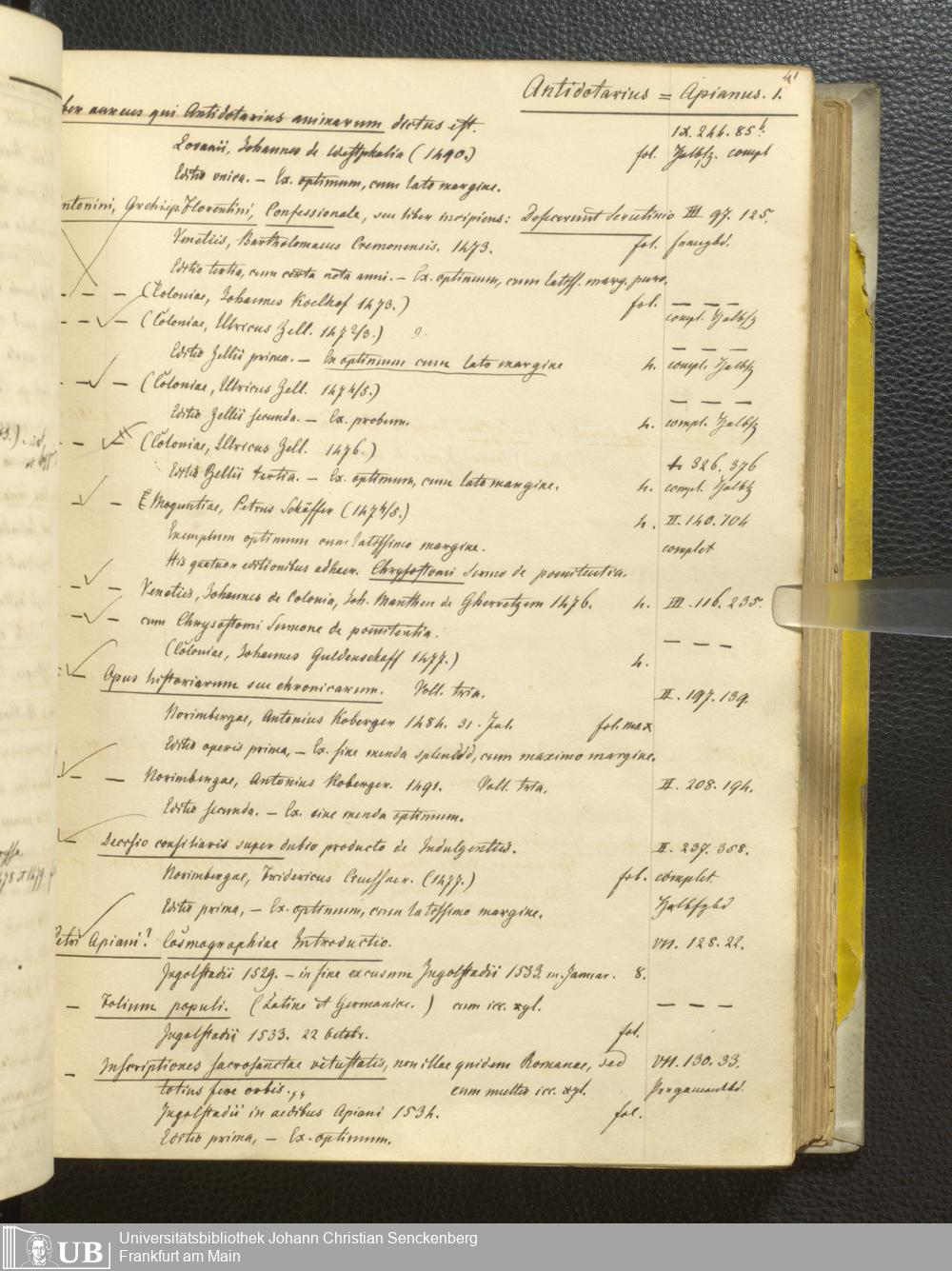 Ms. Ff. G. Kloß III.1 - Catalogus librorum palaeotyporum et manuscriptorum Georgii Klossii