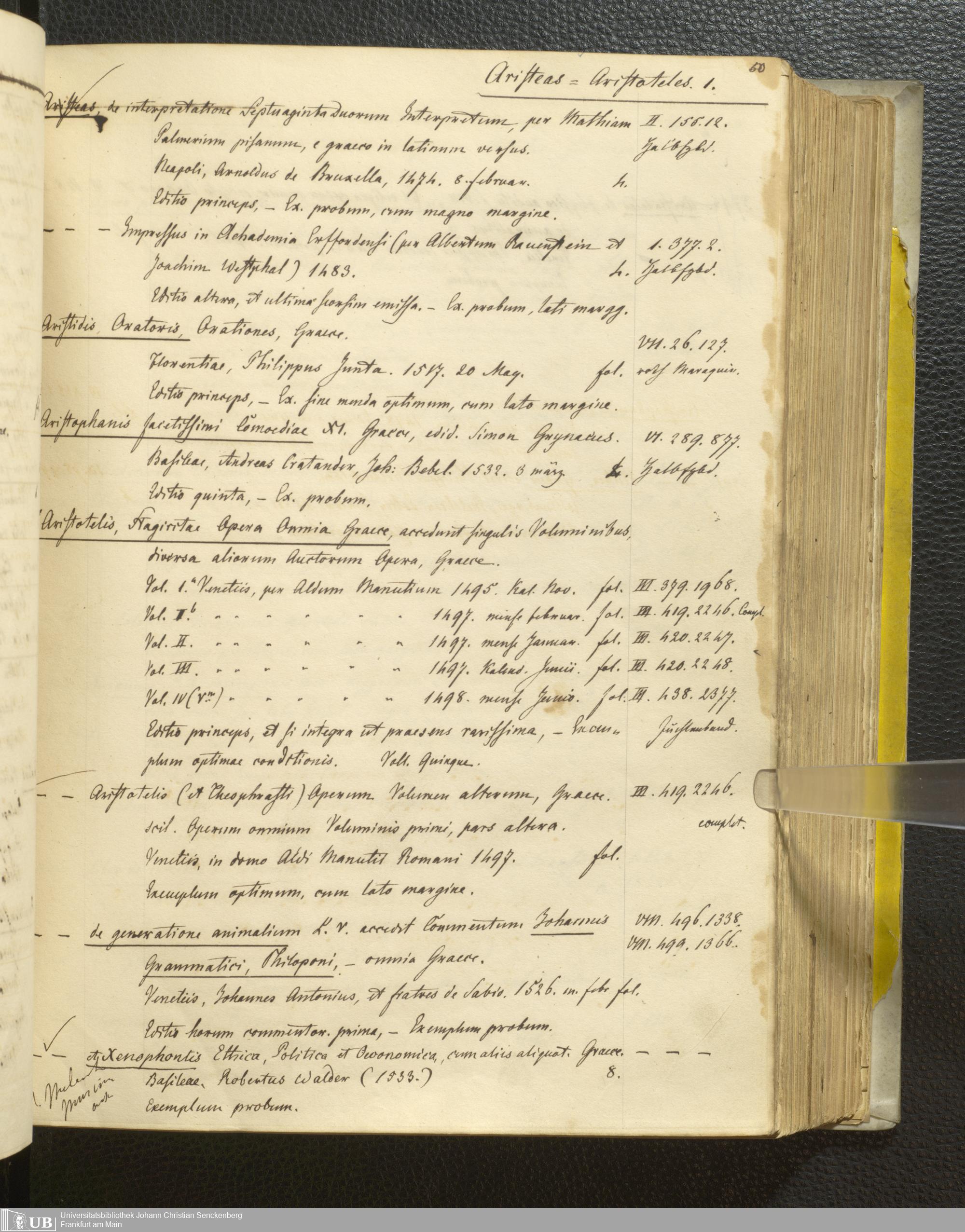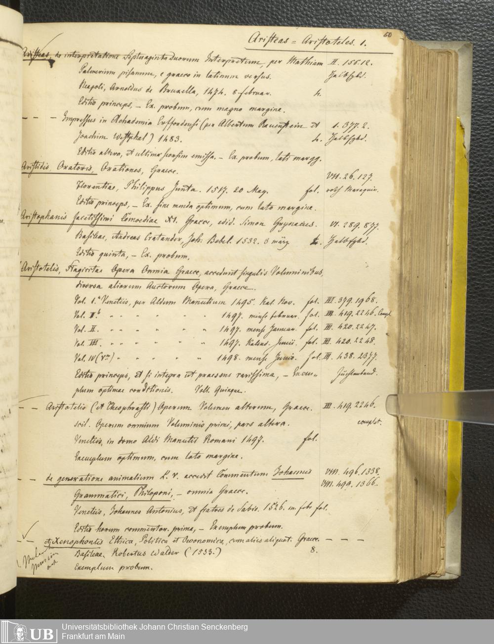 Ms. Ff. G. Kloß III.1 - Catalogus librorum palaeotyporum et manuscriptorum Georgii Klossii