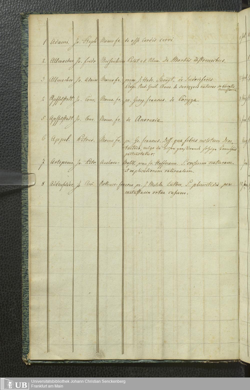 Ms. Ff. G. Kloß III.10 - Verzeichnis Frankfurter medizinischer Dissertationen