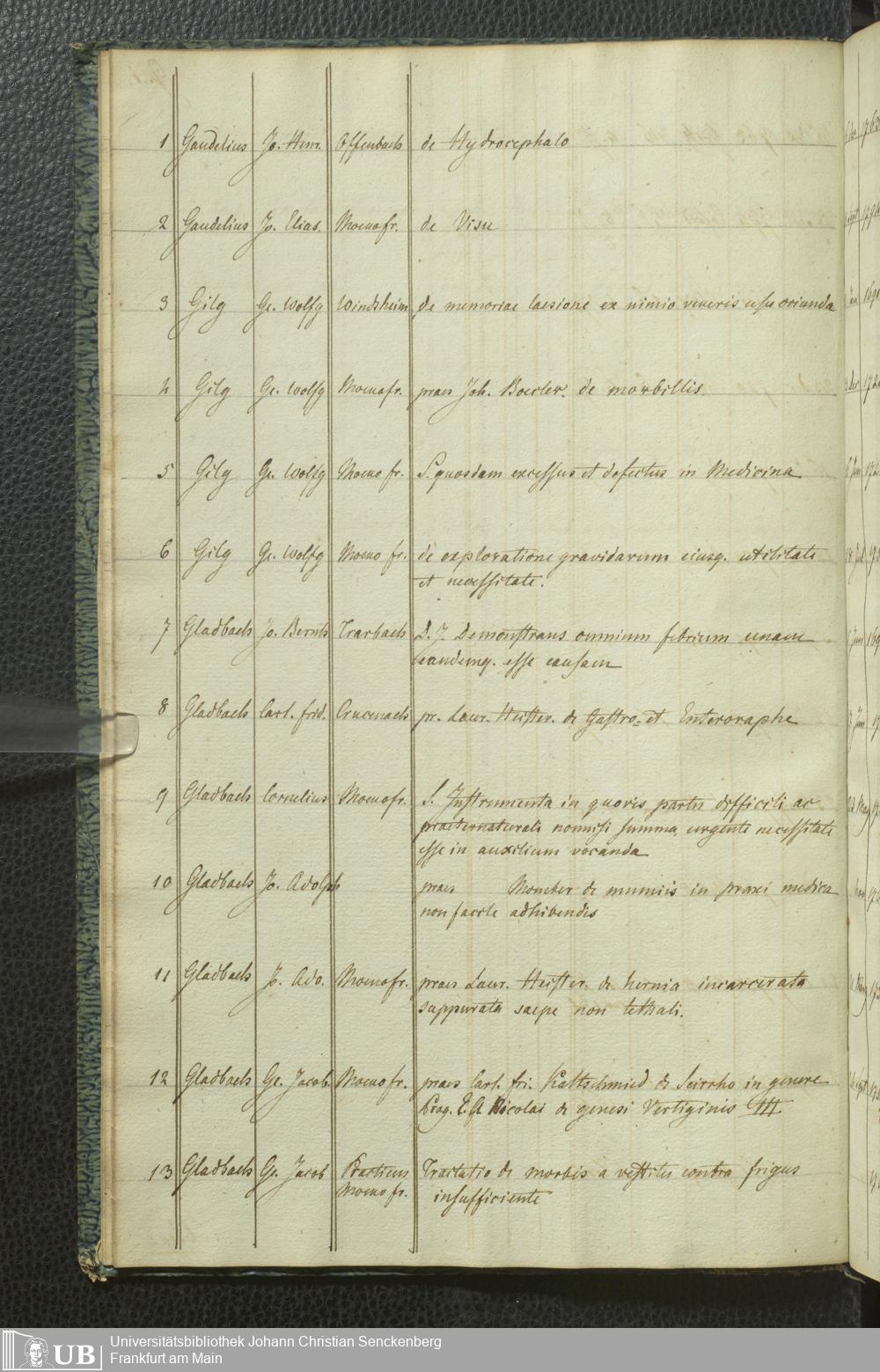 Ms. Ff. G. Kloß III.10 - Verzeichnis Frankfurter medizinischer Dissertationen