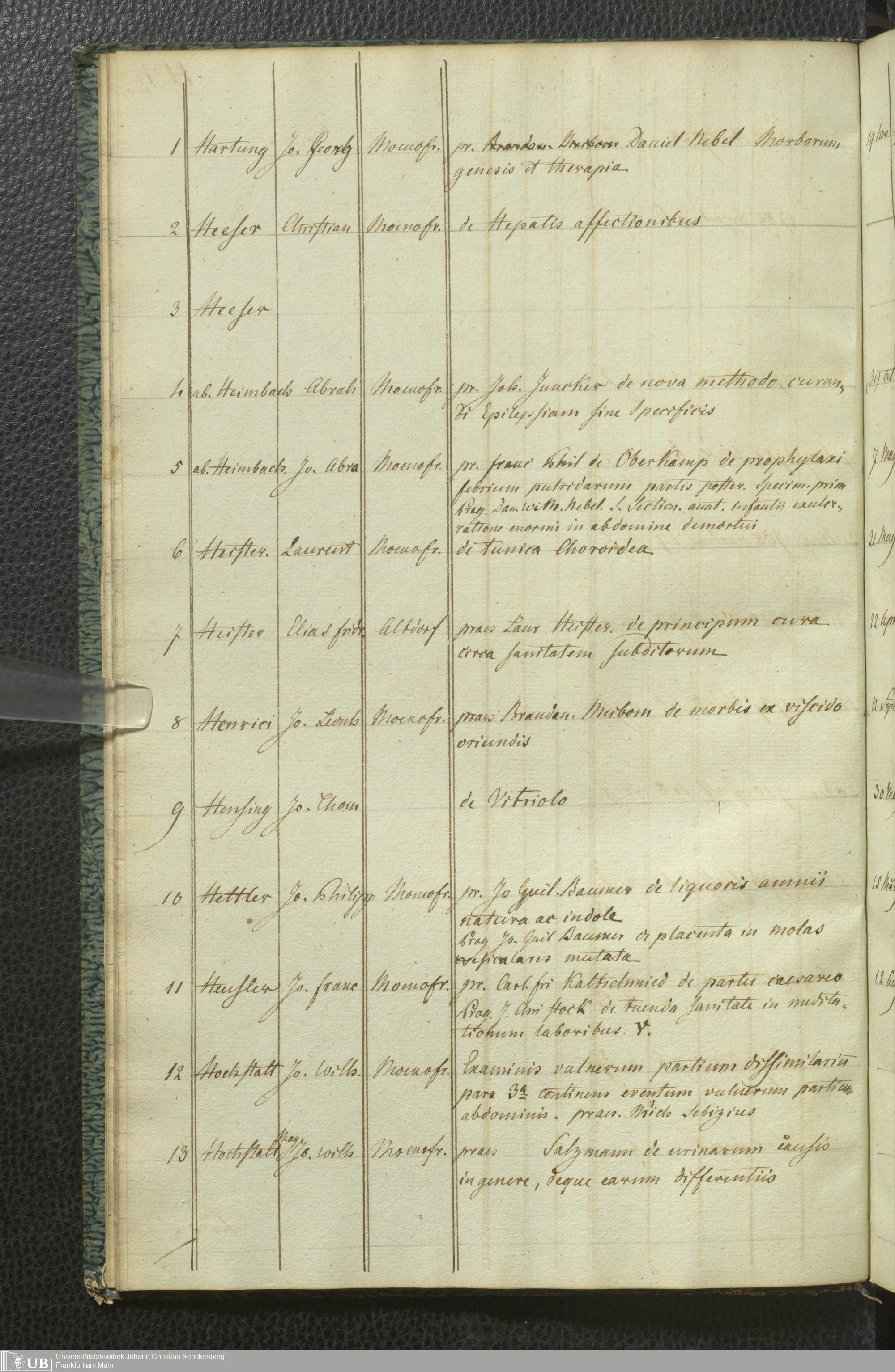 Ms. Ff. G. Kloß III.10 - Verzeichnis Frankfurter medizinischer Dissertationen