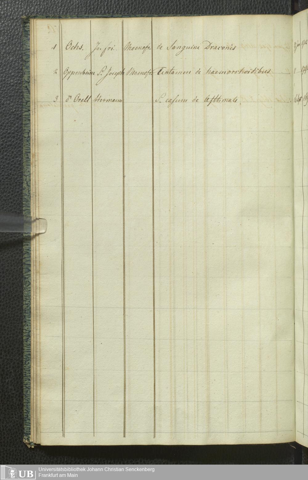 Ms. Ff. G. Kloß III.10 - Verzeichnis Frankfurter medizinischer Dissertationen