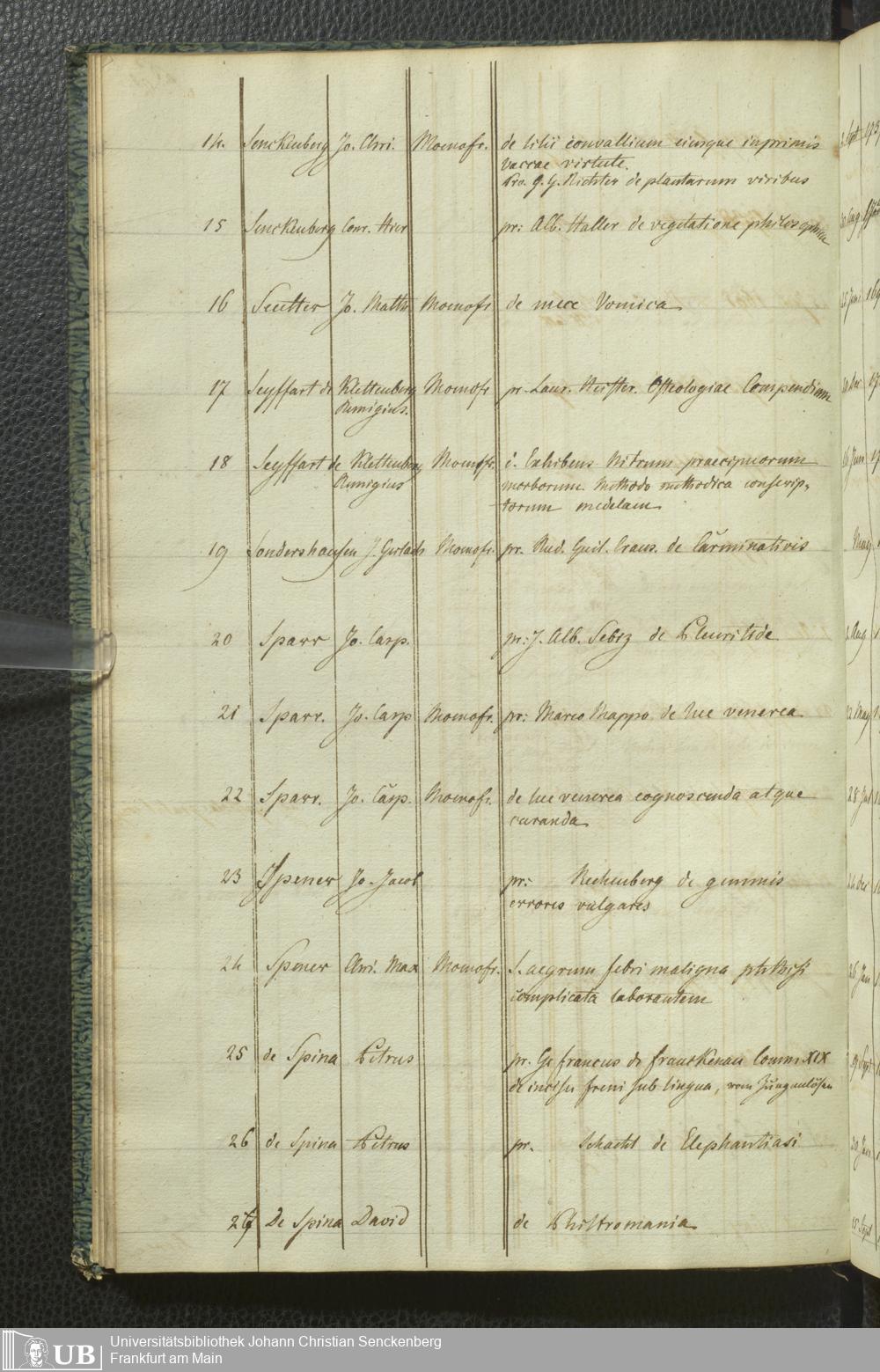 Ms. Ff. G. Kloß III.10 - Verzeichnis Frankfurter medizinischer Dissertationen