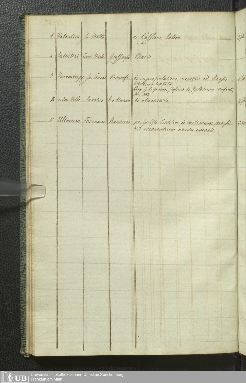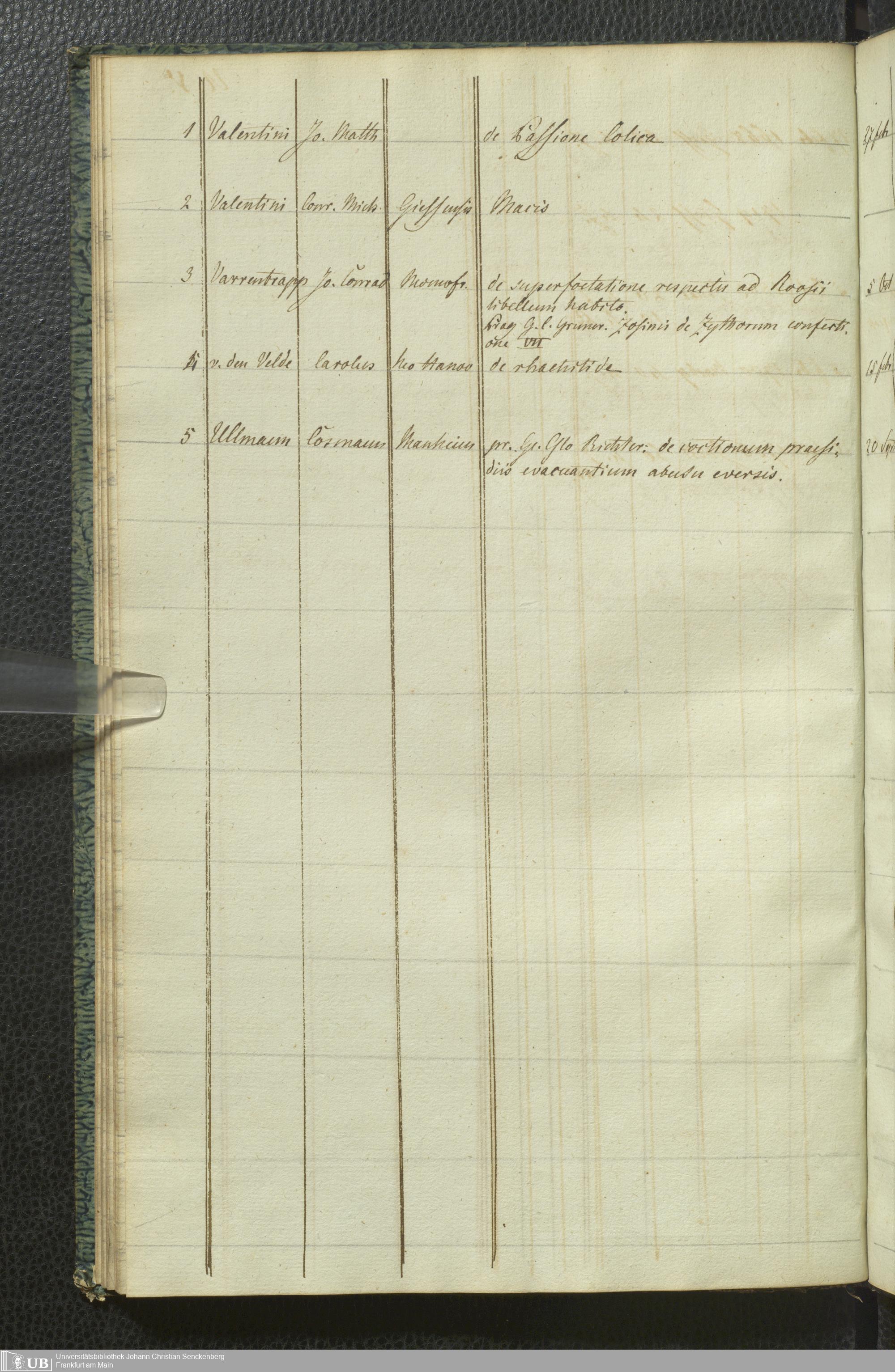 Ms. Ff. G. Kloß III.10 - Verzeichnis Frankfurter medizinischer Dissertationen