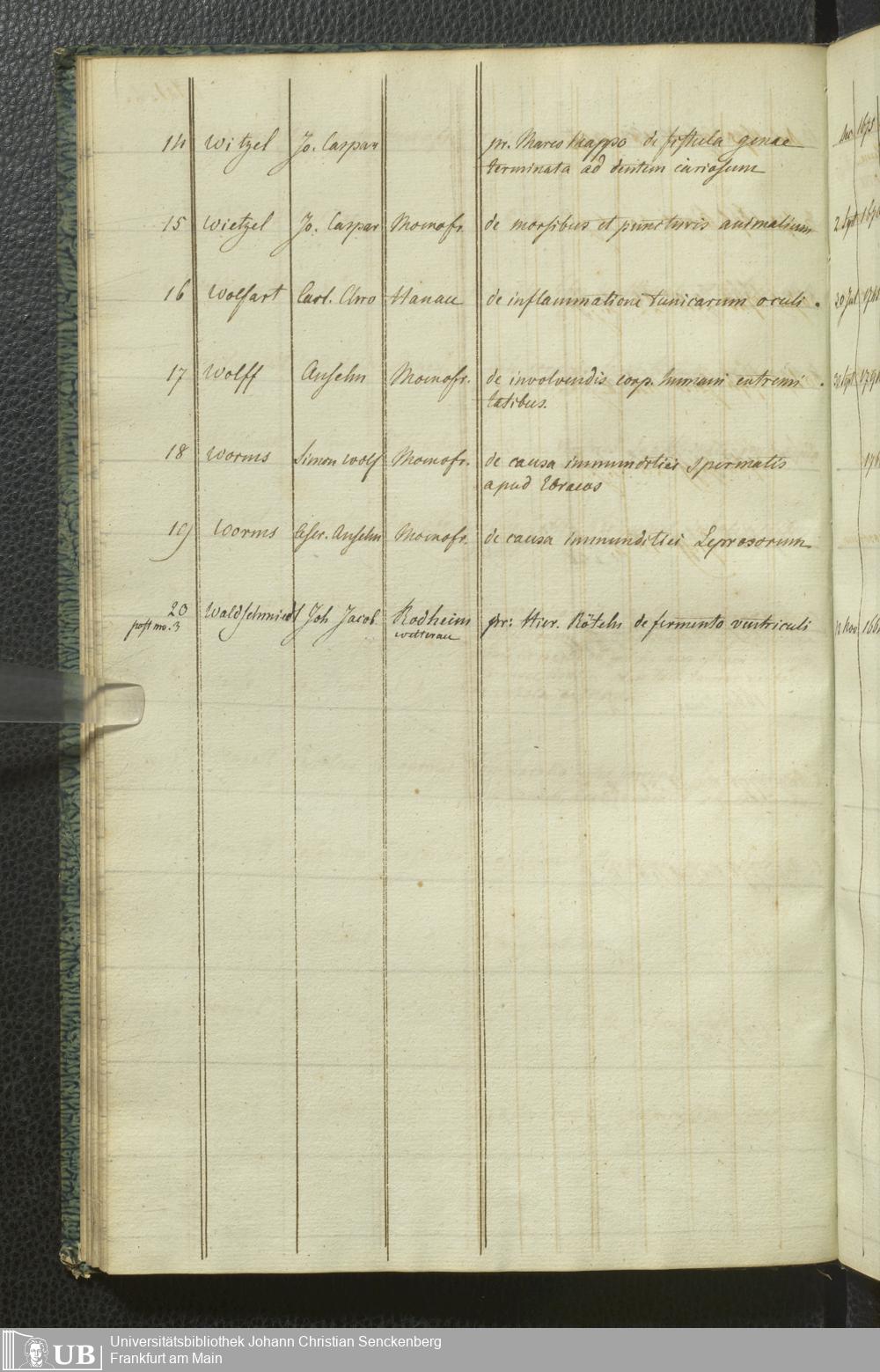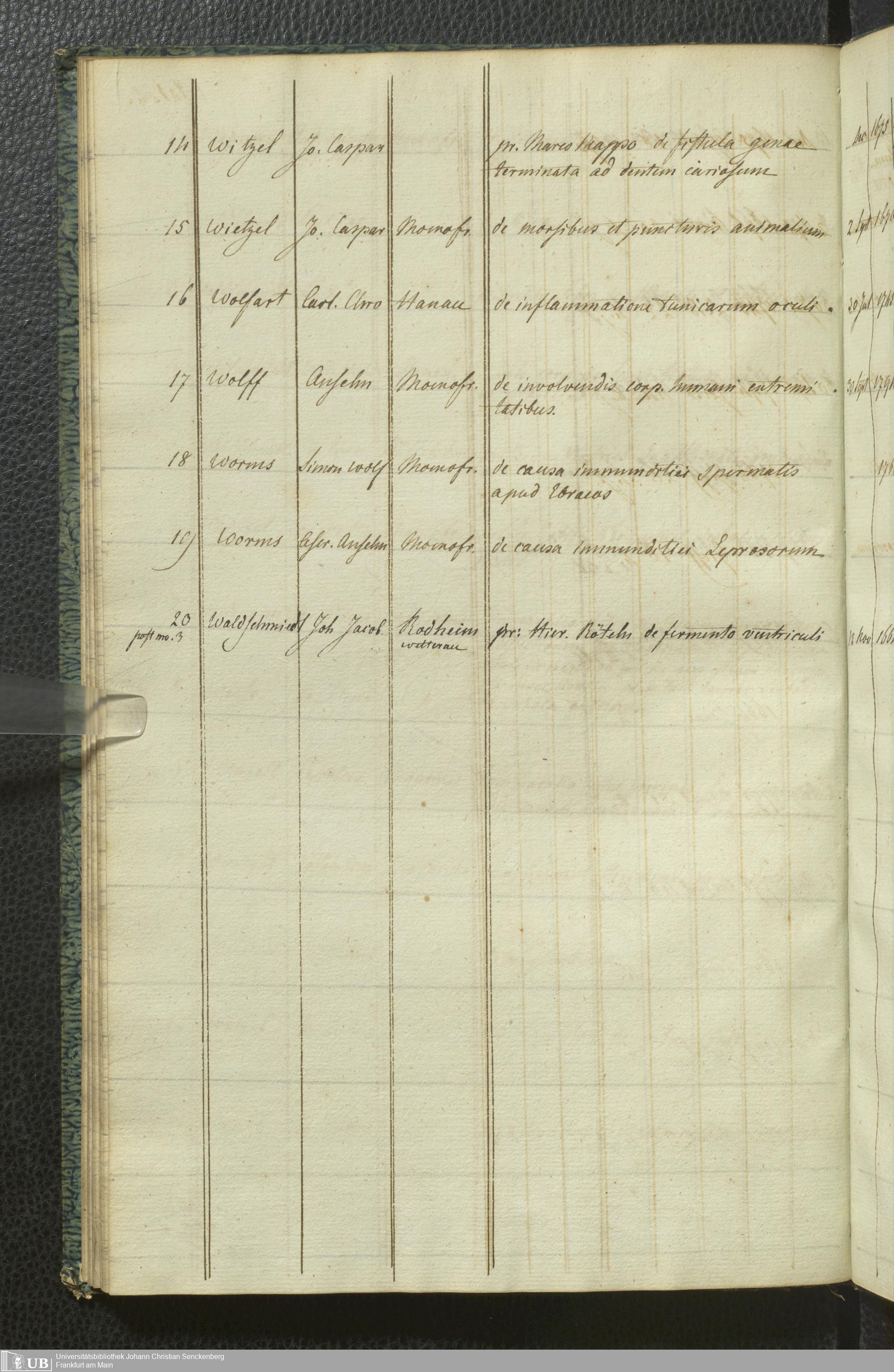 Ms. Ff. G. Kloß III.10 - Verzeichnis Frankfurter medizinischer Dissertationen
