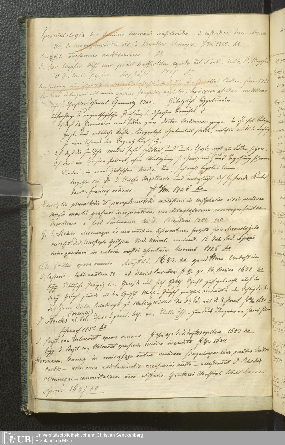 Ms. Ff. G. Kloß III.10 - Verzeichnis Frankfurter medizinischer Dissertationen