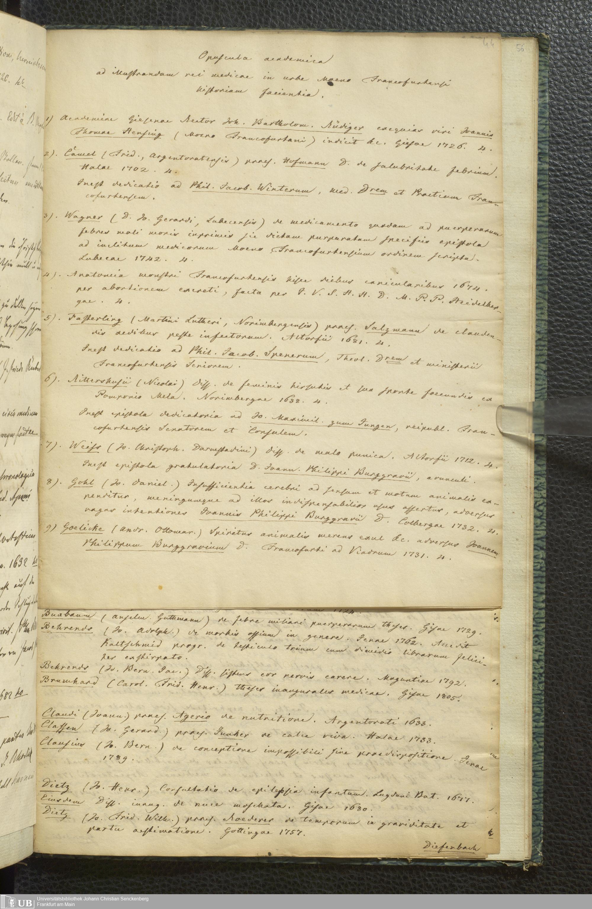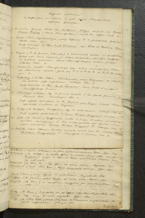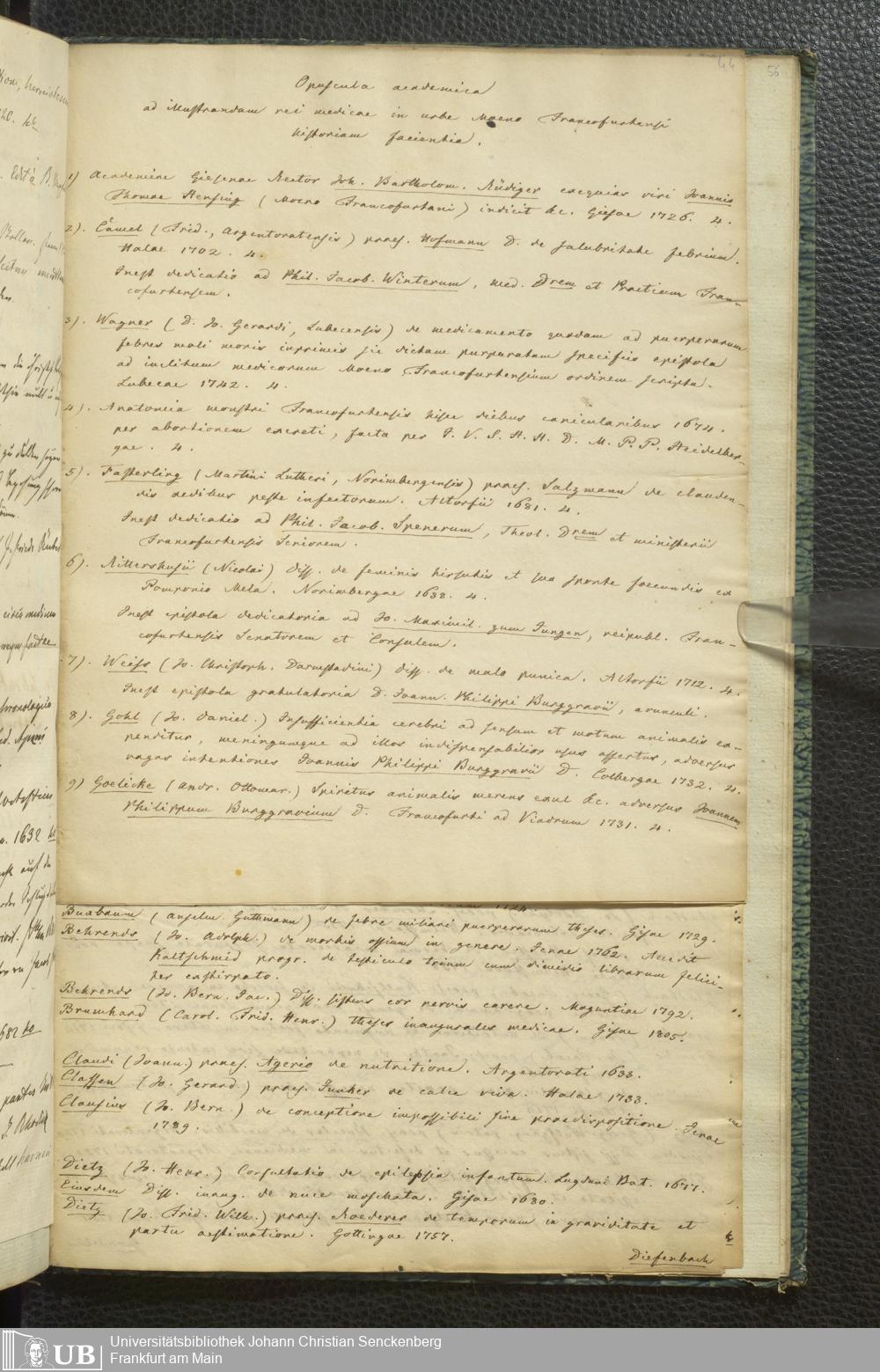 Ms. Ff. G. Kloß III.10 - Verzeichnis Frankfurter medizinischer Dissertationen