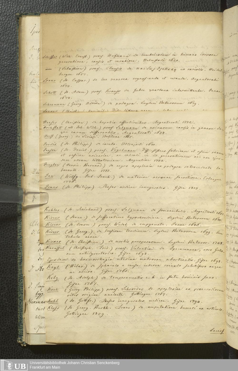 Ms. Ff. G. Kloß III.10 - Verzeichnis Frankfurter medizinischer Dissertationen