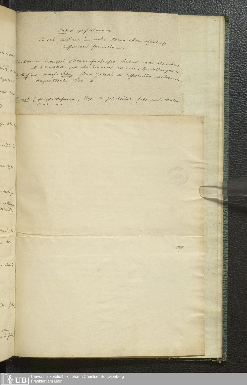 Ms. Ff. G. Kloß III.10 - Verzeichnis Frankfurter medizinischer Dissertationen