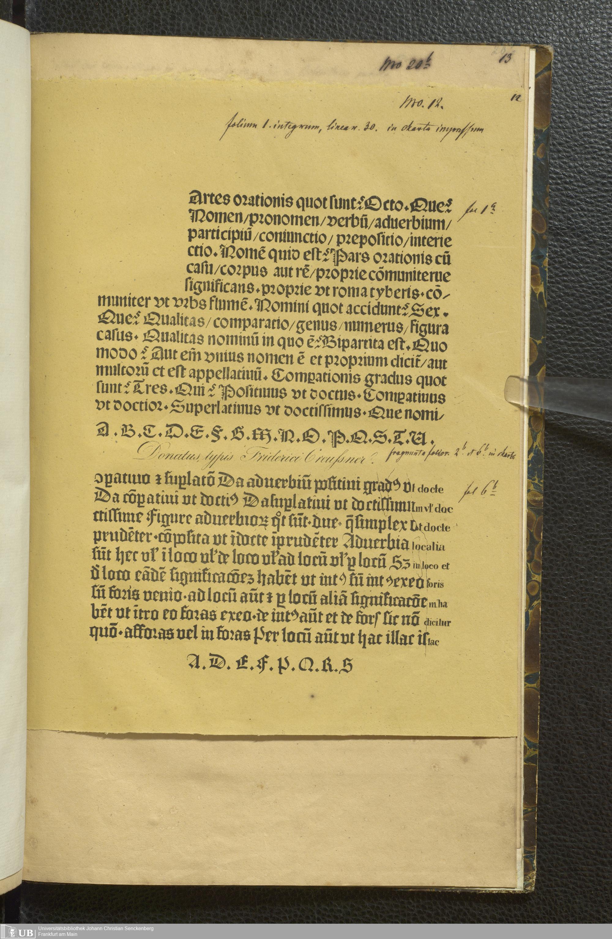 Ms. Ff. G. Kloß VI.5 Bd. 2 - Icones Lithographicae ad fragmenta Editionum Donati et Xylographici et palaeotyparum transsumtae accedit Iconum palaeotyporum Mantissa