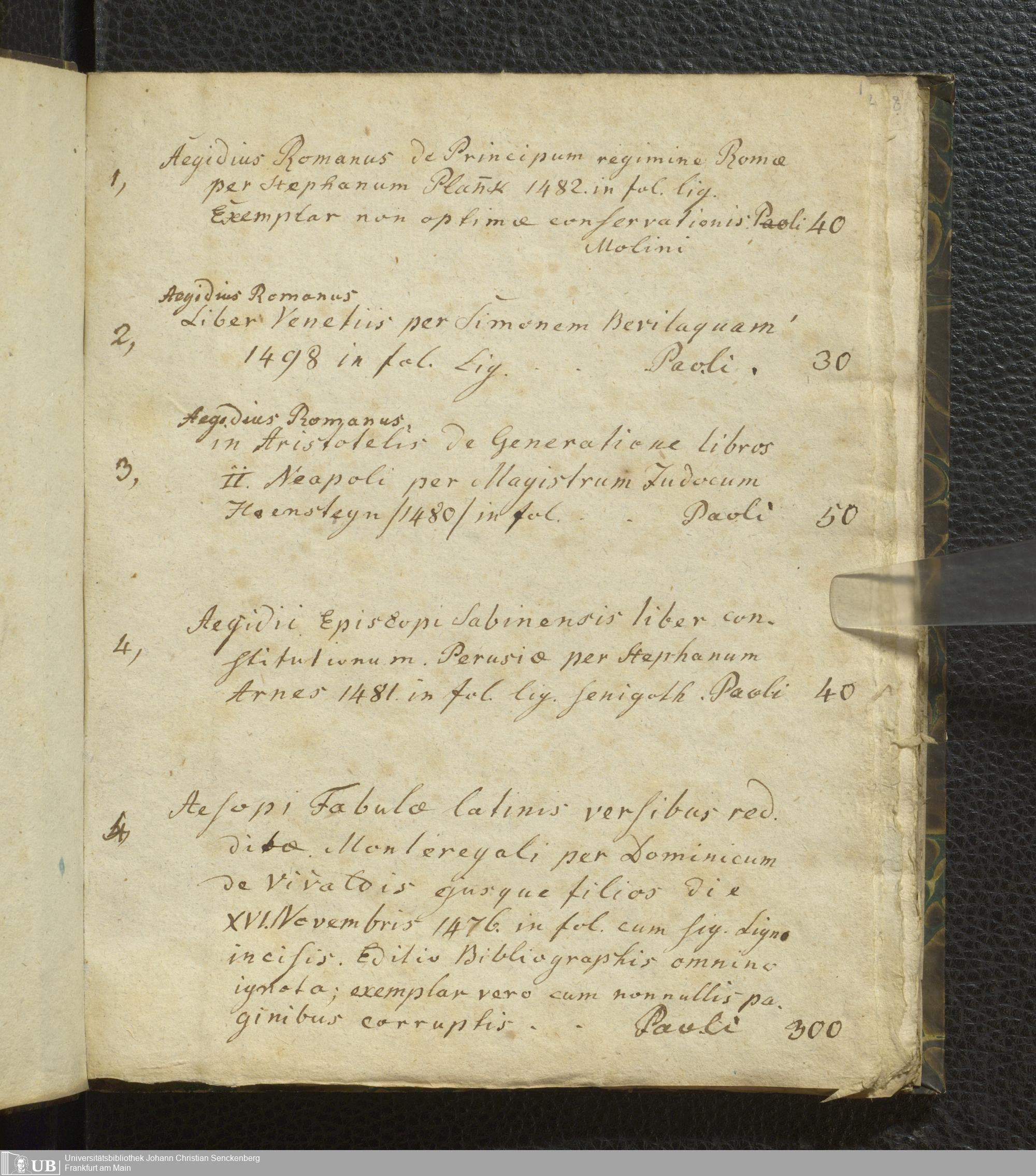 Ms. Ff. G. Kloß VI.2 - Verzeichnis italienischer Inkunabeln. Nach dem Alphabet der Autoren und Sachtitel