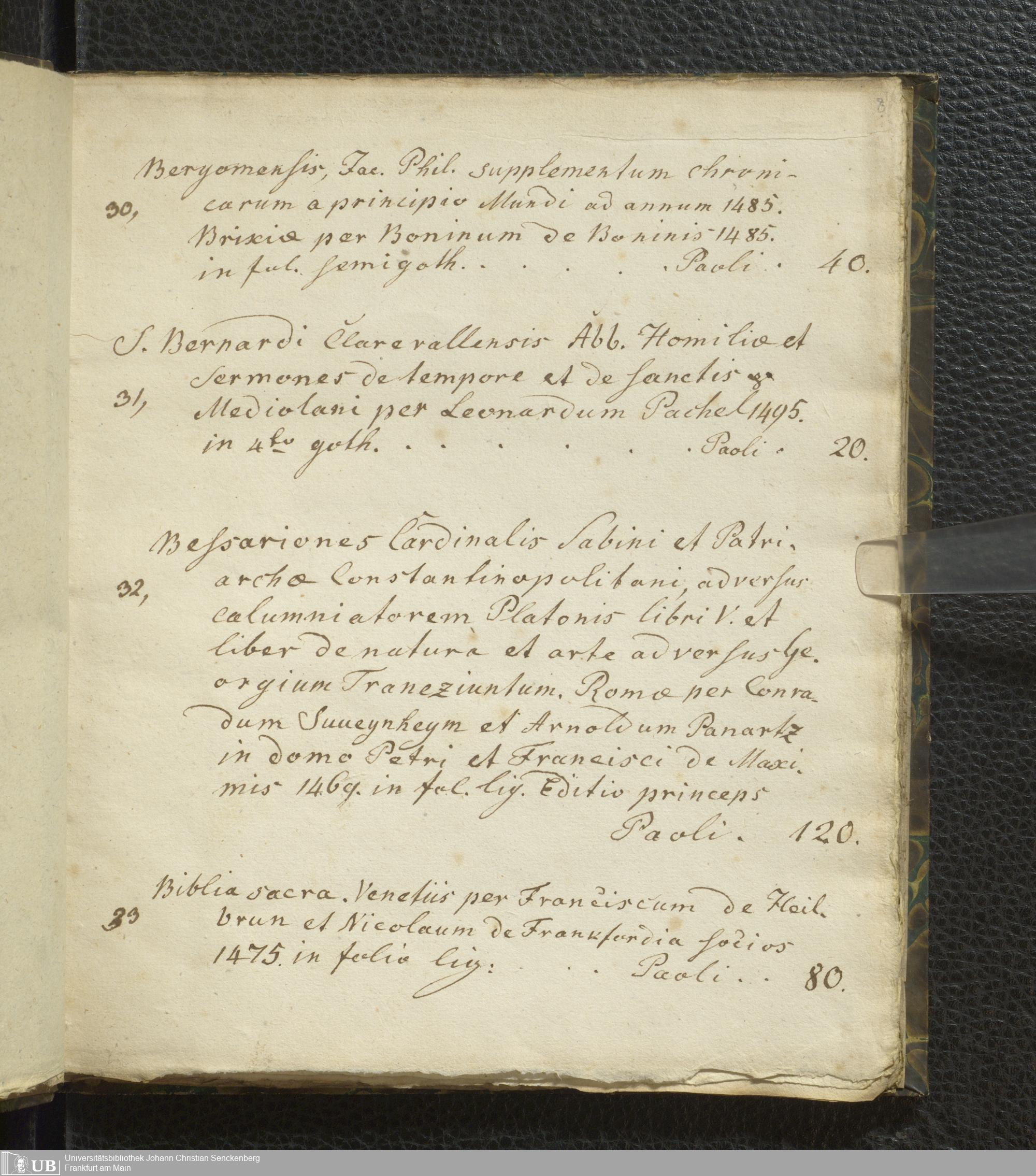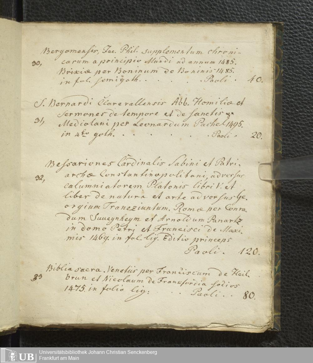Ms. Ff. G. Kloß VI.2 - Verzeichnis italienischer Inkunabeln. Nach dem Alphabet der Autoren und Sachtitel
