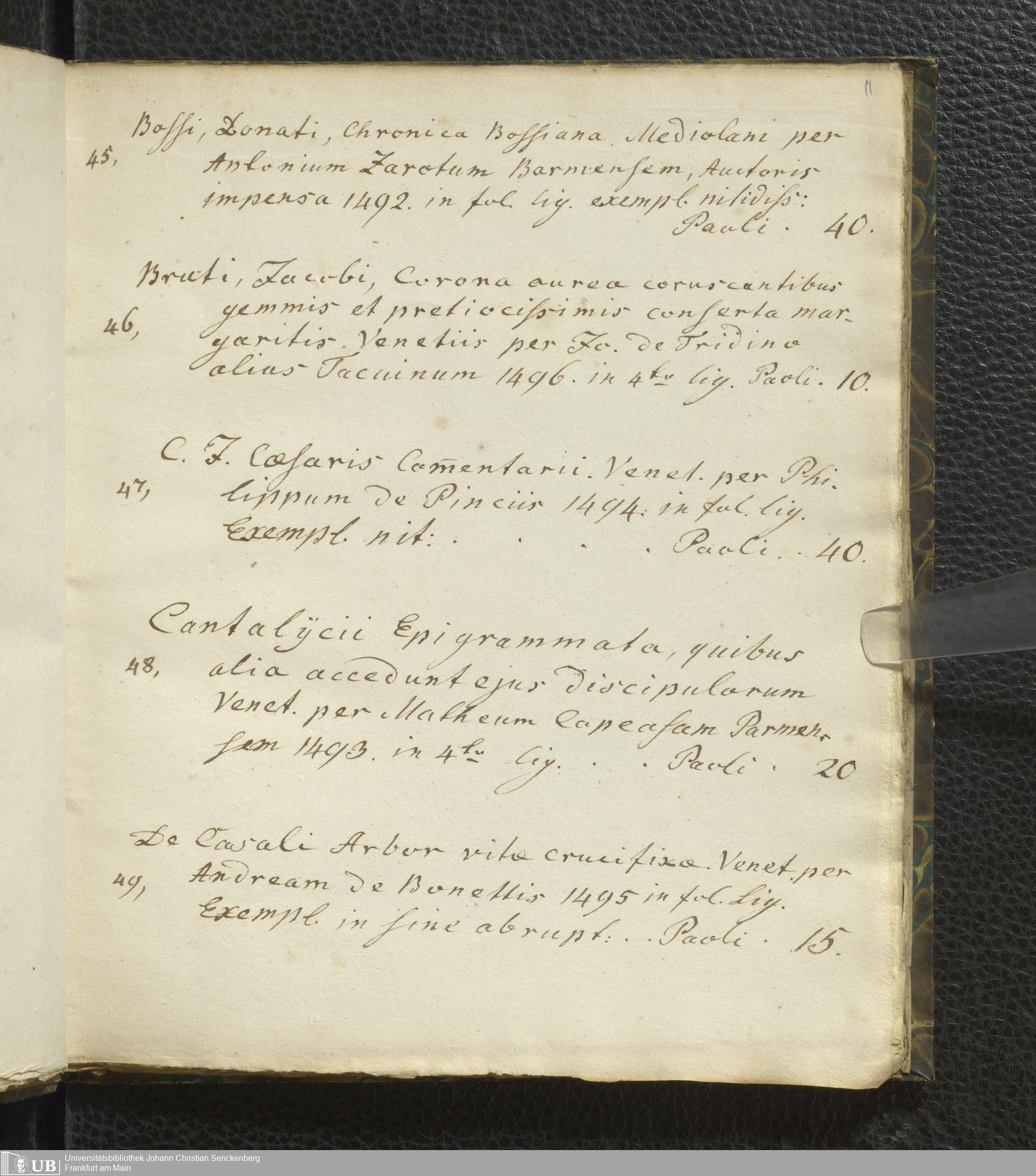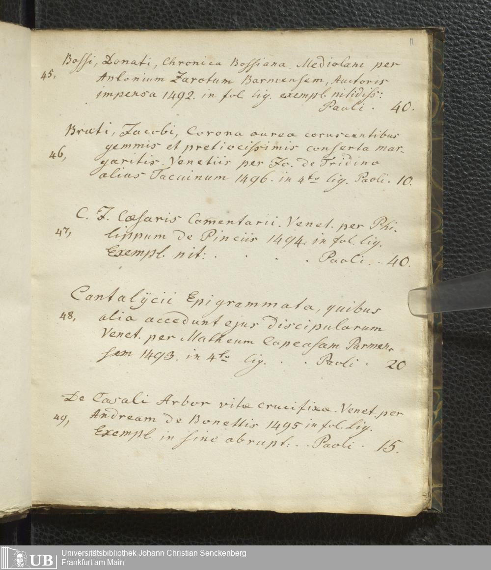 Ms. Ff. G. Kloß VI.2 - Verzeichnis italienischer Inkunabeln. Nach dem Alphabet der Autoren und Sachtitel
