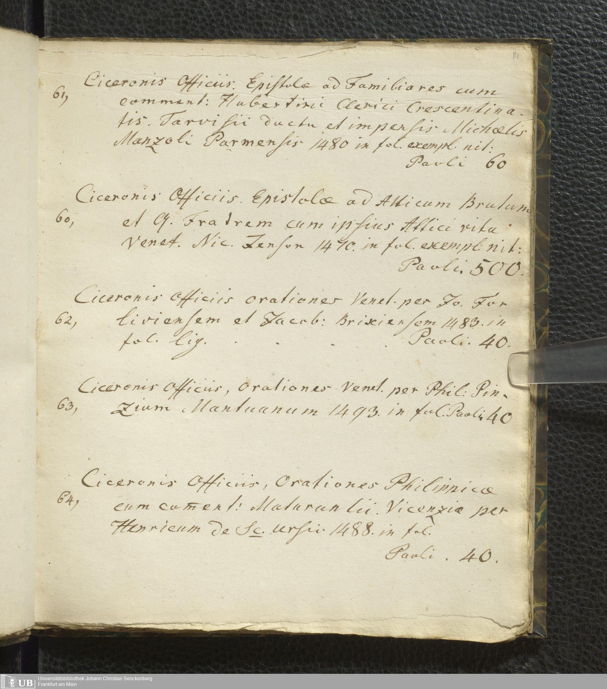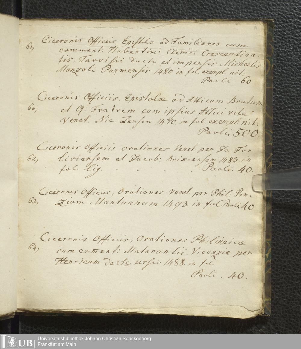 Ms. Ff. G. Kloß VI.2 - Verzeichnis italienischer Inkunabeln. Nach dem Alphabet der Autoren und Sachtitel