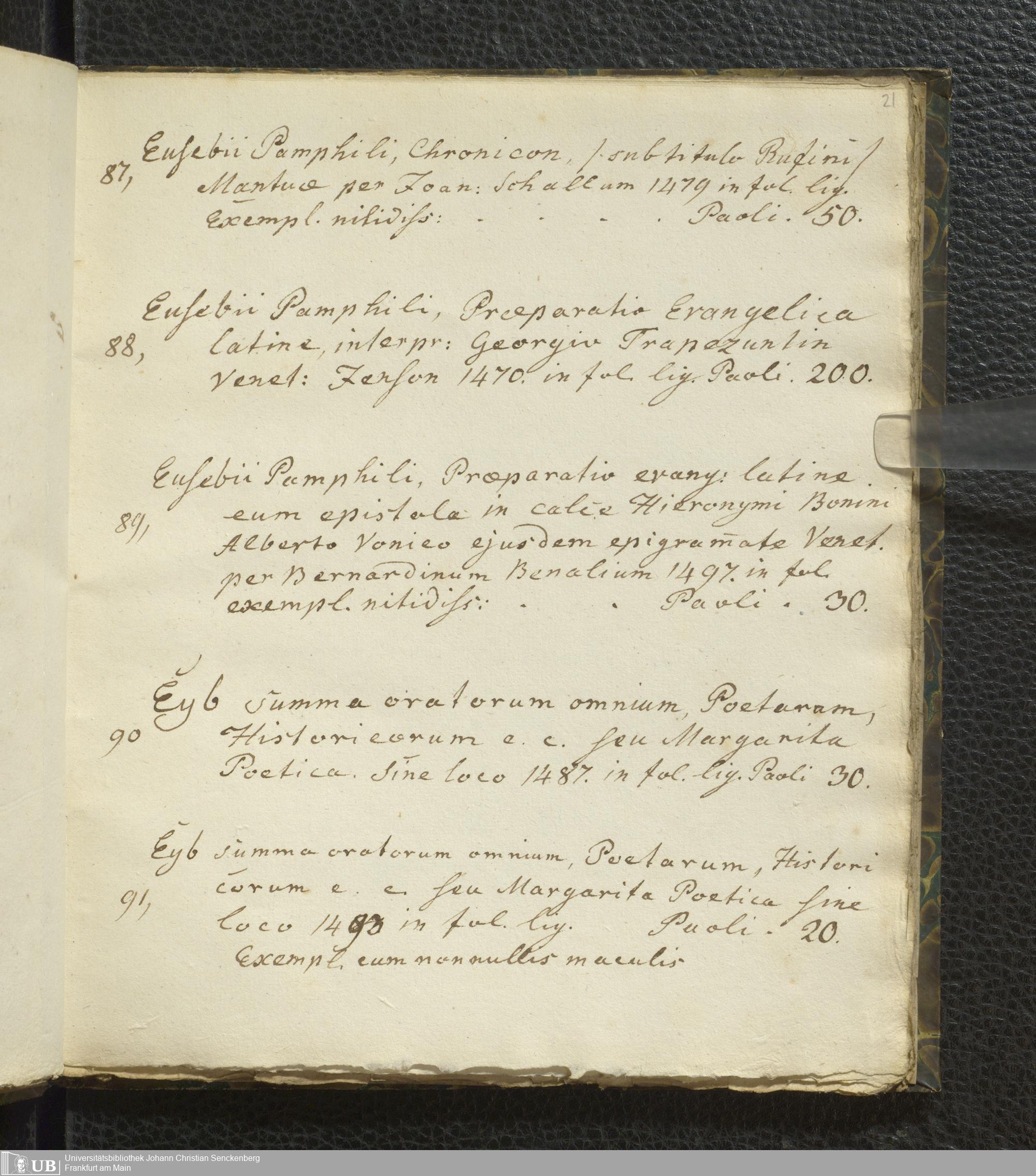 Ms. Ff. G. Kloß VI.2 - Verzeichnis italienischer Inkunabeln. Nach dem Alphabet der Autoren und Sachtitel
