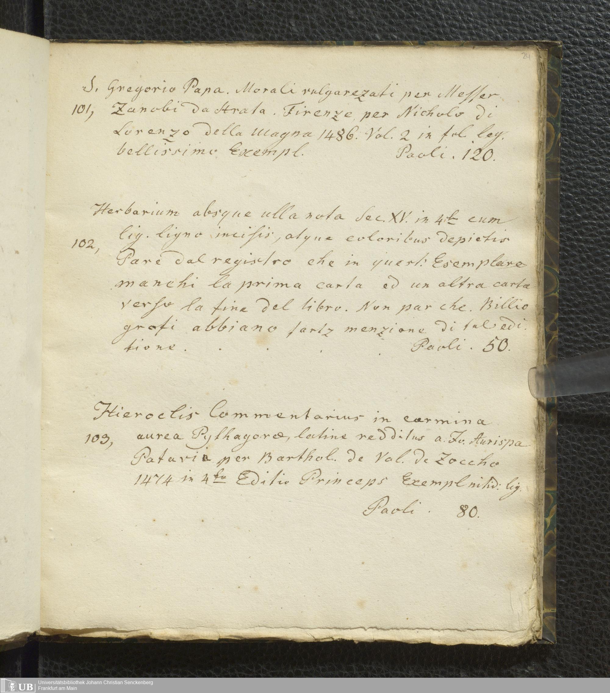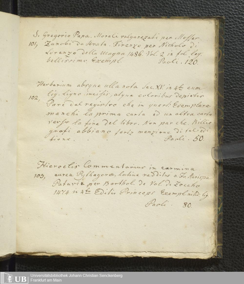 Ms. Ff. G. Kloß VI.2 - Verzeichnis italienischer Inkunabeln. Nach dem Alphabet der Autoren und Sachtitel