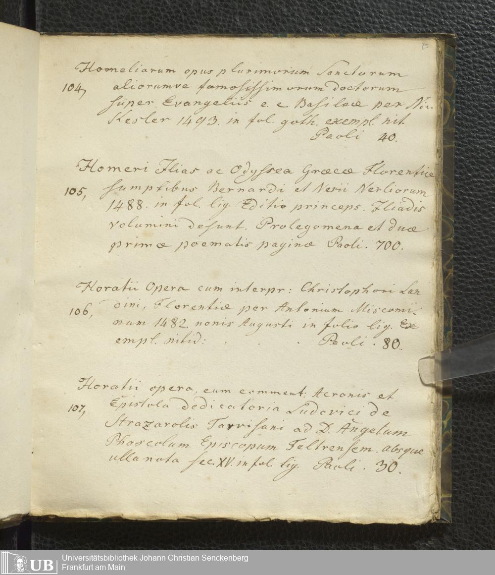 Ms. Ff. G. Kloß VI.2 - Verzeichnis italienischer Inkunabeln. Nach dem Alphabet der Autoren und Sachtitel