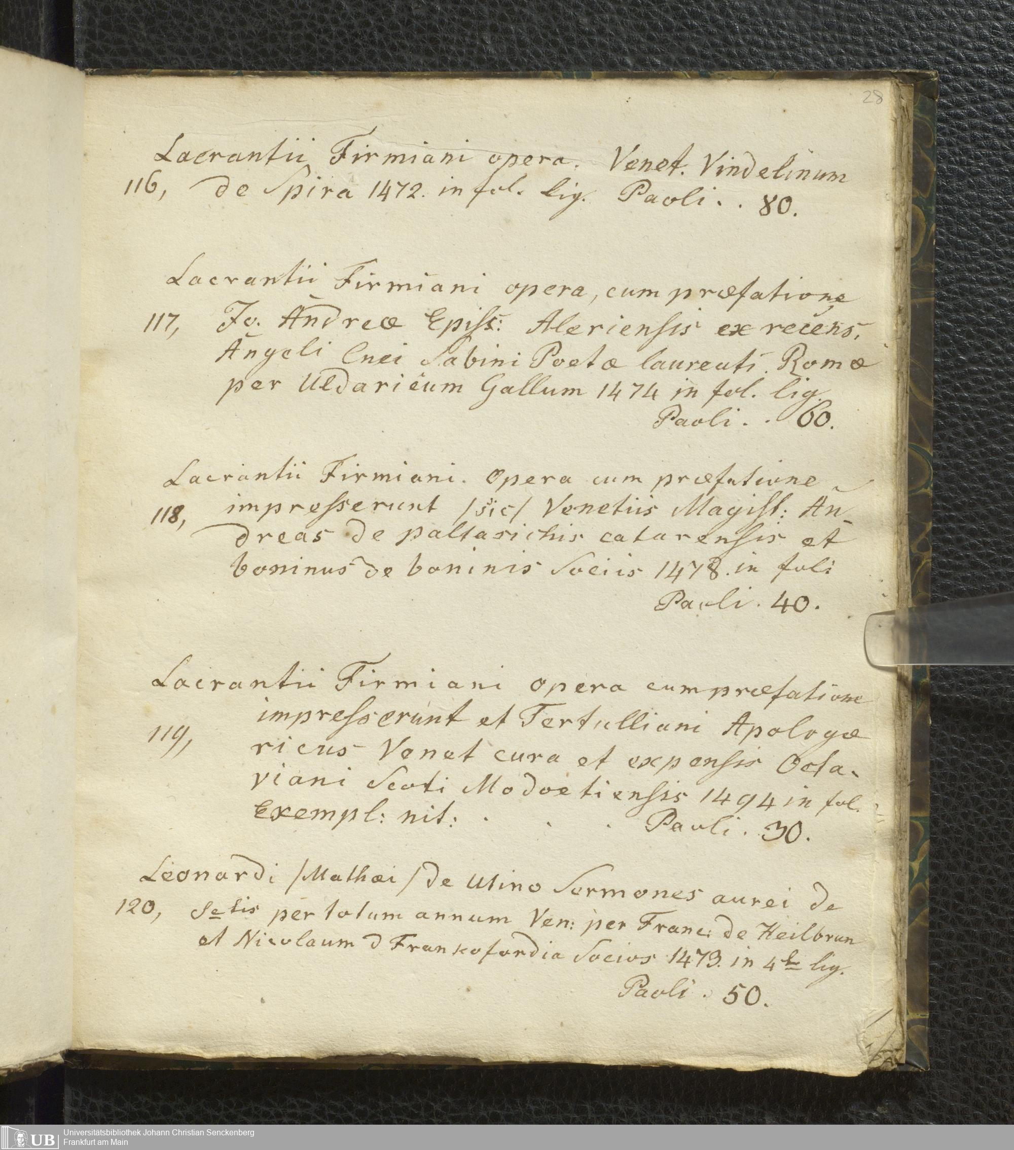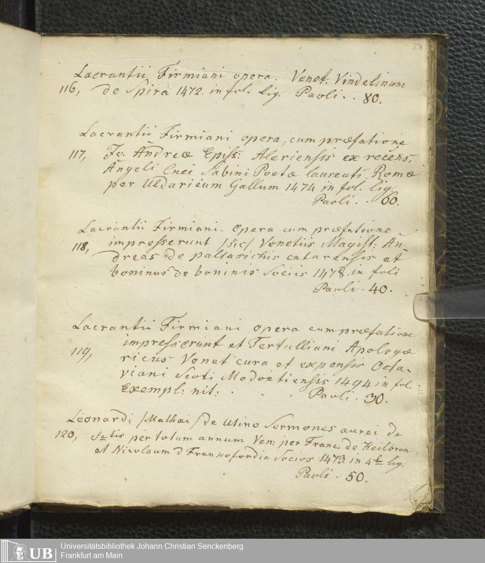 Ms. Ff. G. Kloß VI.2 - Verzeichnis italienischer Inkunabeln. Nach dem Alphabet der Autoren und Sachtitel
