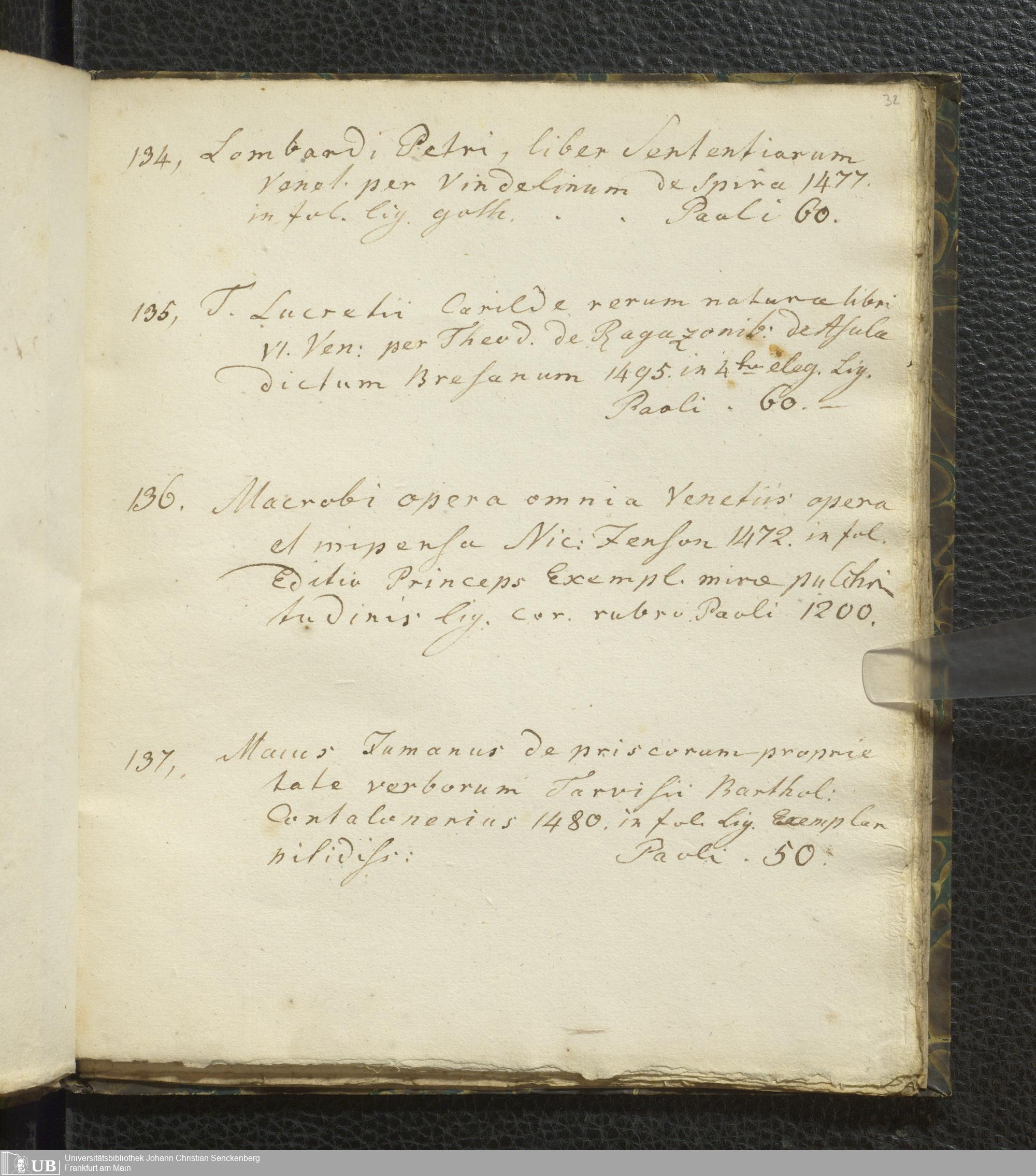 Ms. Ff. G. Kloß VI.2 - Verzeichnis italienischer Inkunabeln. Nach dem Alphabet der Autoren und Sachtitel
