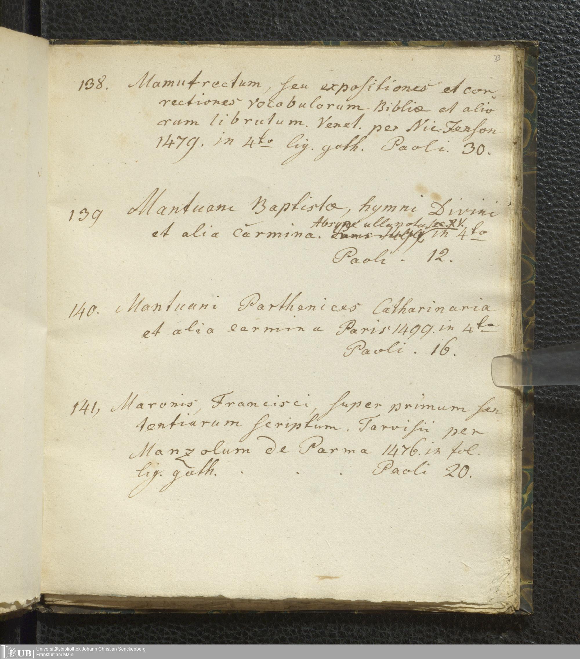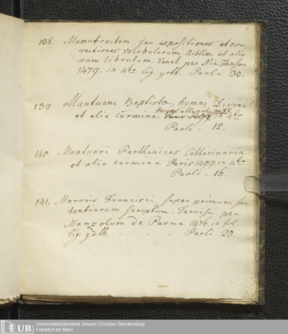 Ms. Ff. G. Kloß VI.2 - Verzeichnis italienischer Inkunabeln. Nach dem Alphabet der Autoren und Sachtitel