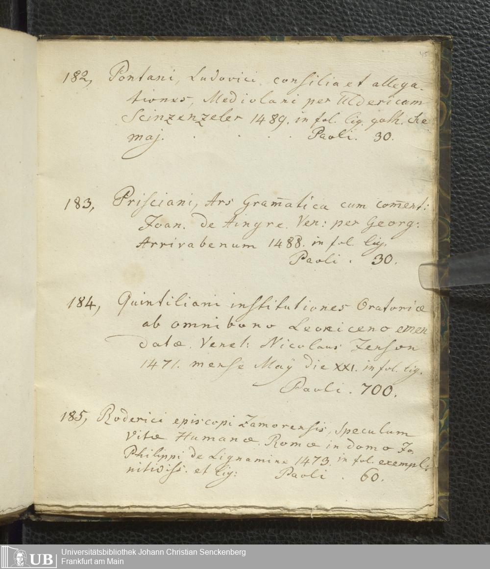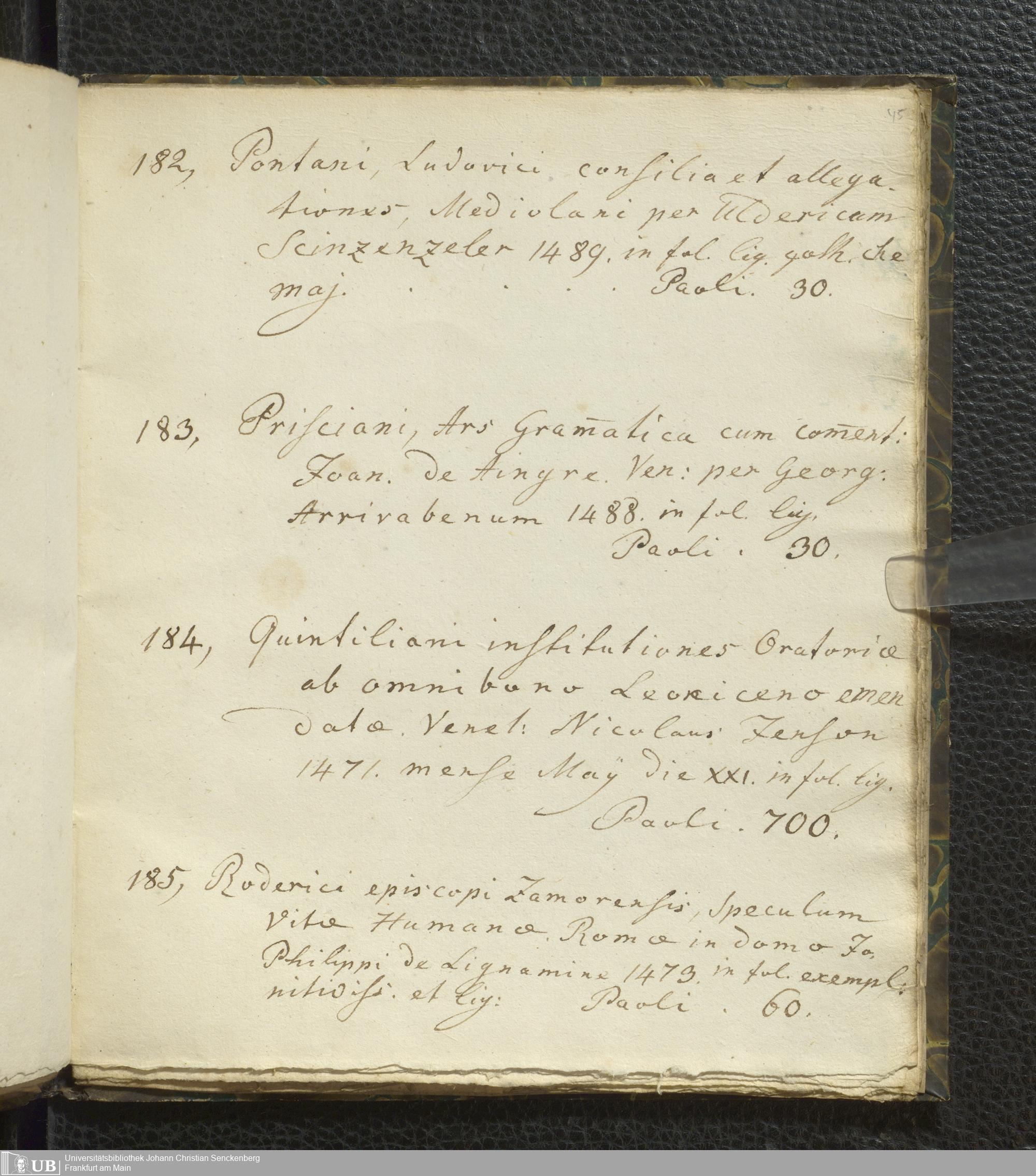 Ms. Ff. G. Kloß VI.2 - Verzeichnis italienischer Inkunabeln. Nach dem Alphabet der Autoren und Sachtitel