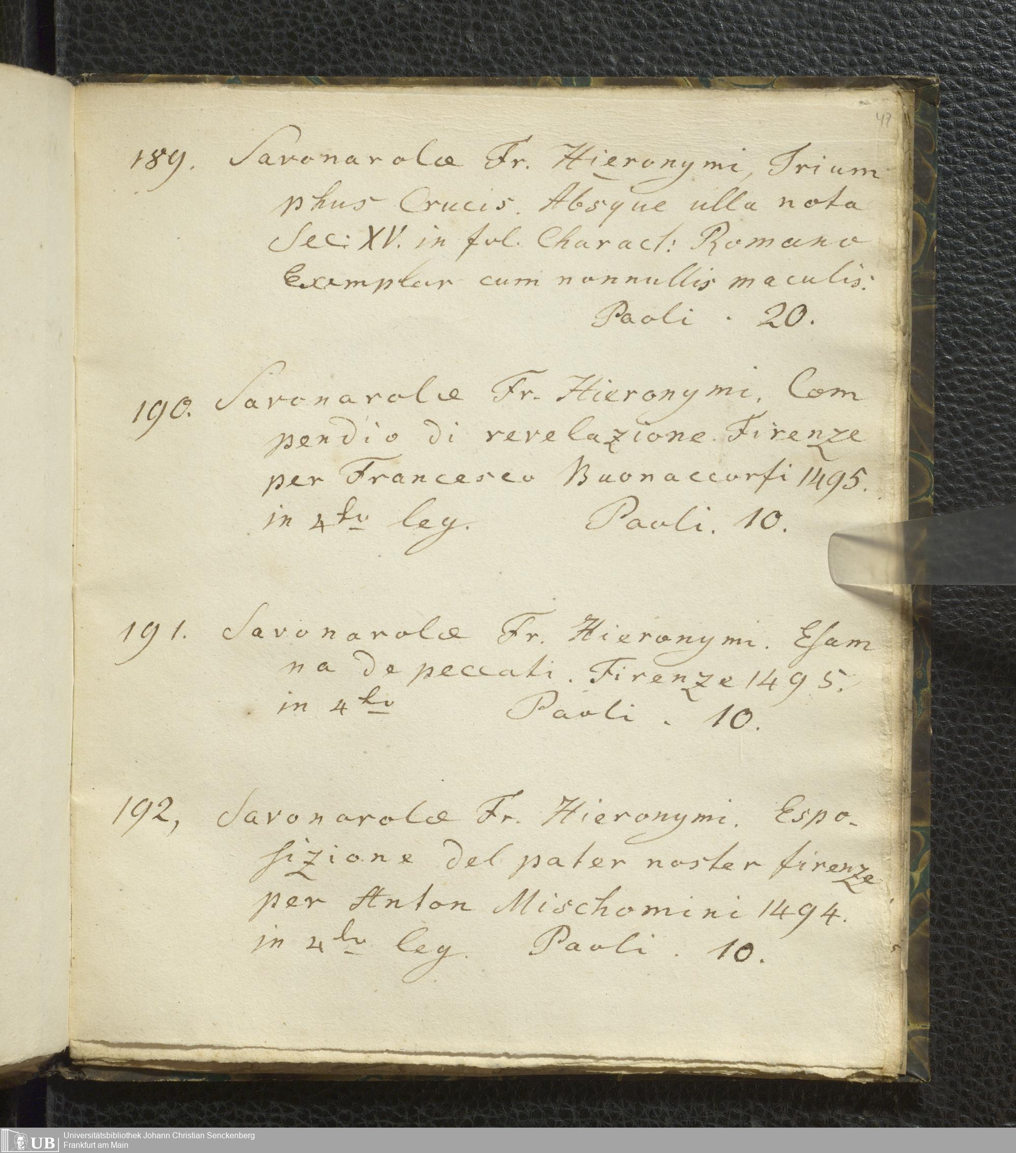 Ms. Ff. G. Kloß VI.2 - Verzeichnis italienischer Inkunabeln. Nach dem Alphabet der Autoren und Sachtitel