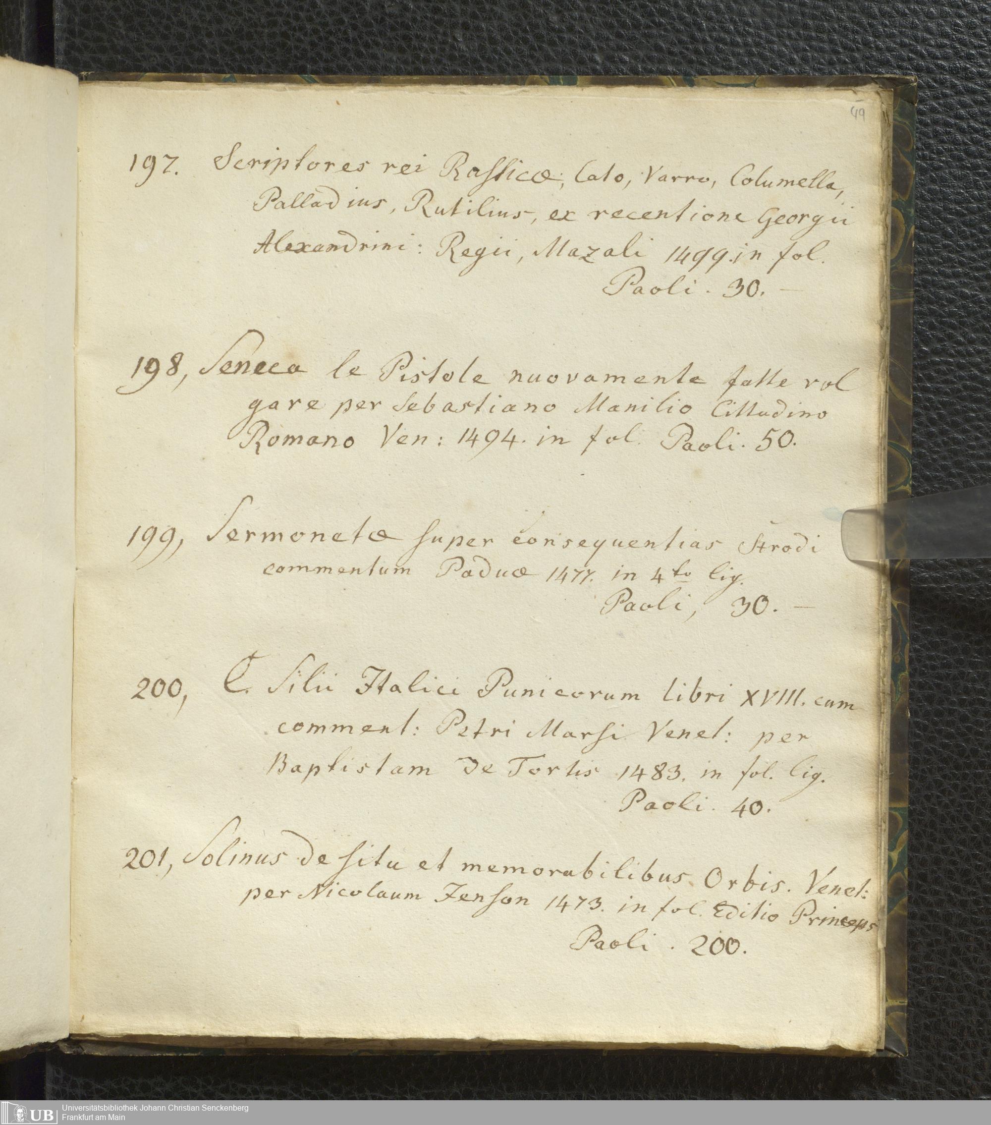 Ms. Ff. G. Kloß VI.2 - Verzeichnis italienischer Inkunabeln. Nach dem Alphabet der Autoren und Sachtitel