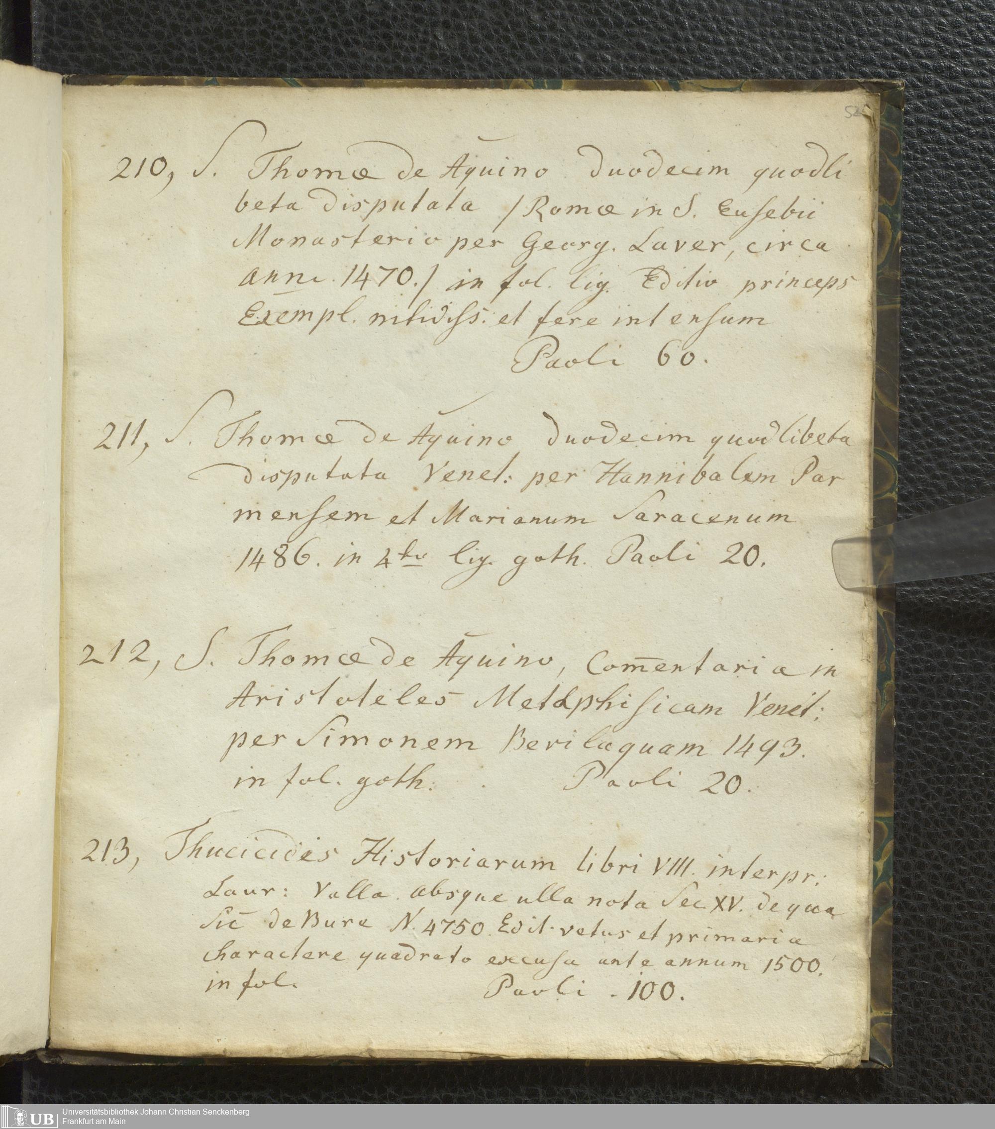 Ms. Ff. G. Kloß VI.2 - Verzeichnis italienischer Inkunabeln. Nach dem Alphabet der Autoren und Sachtitel