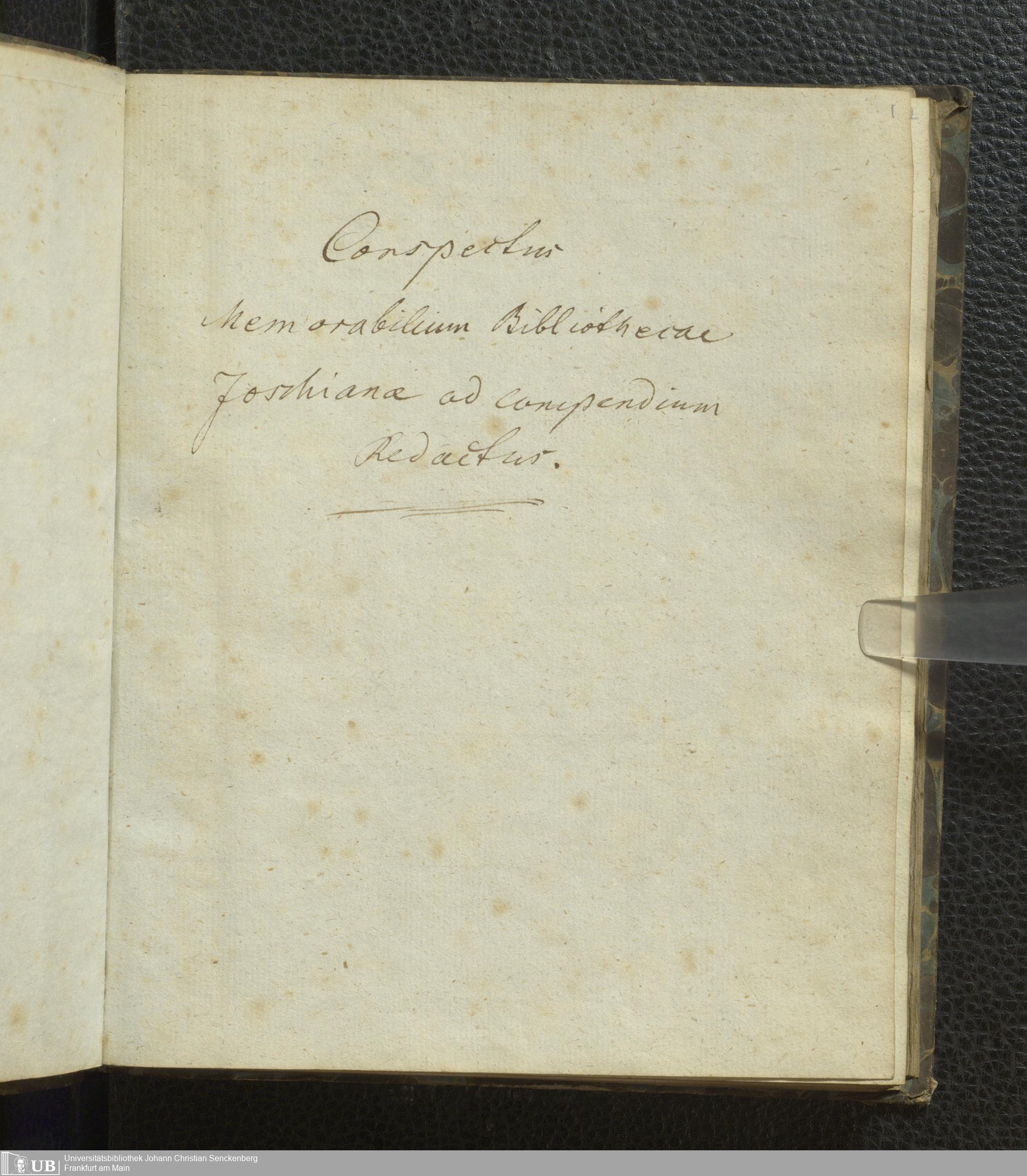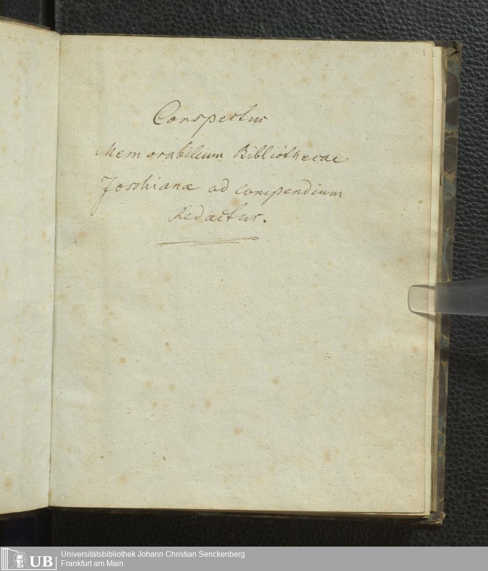 Ms. Ff. G. Kloß VI.3 - Conspectus Memorabilium Bibliothecae Joschianae ad compendium Redactus