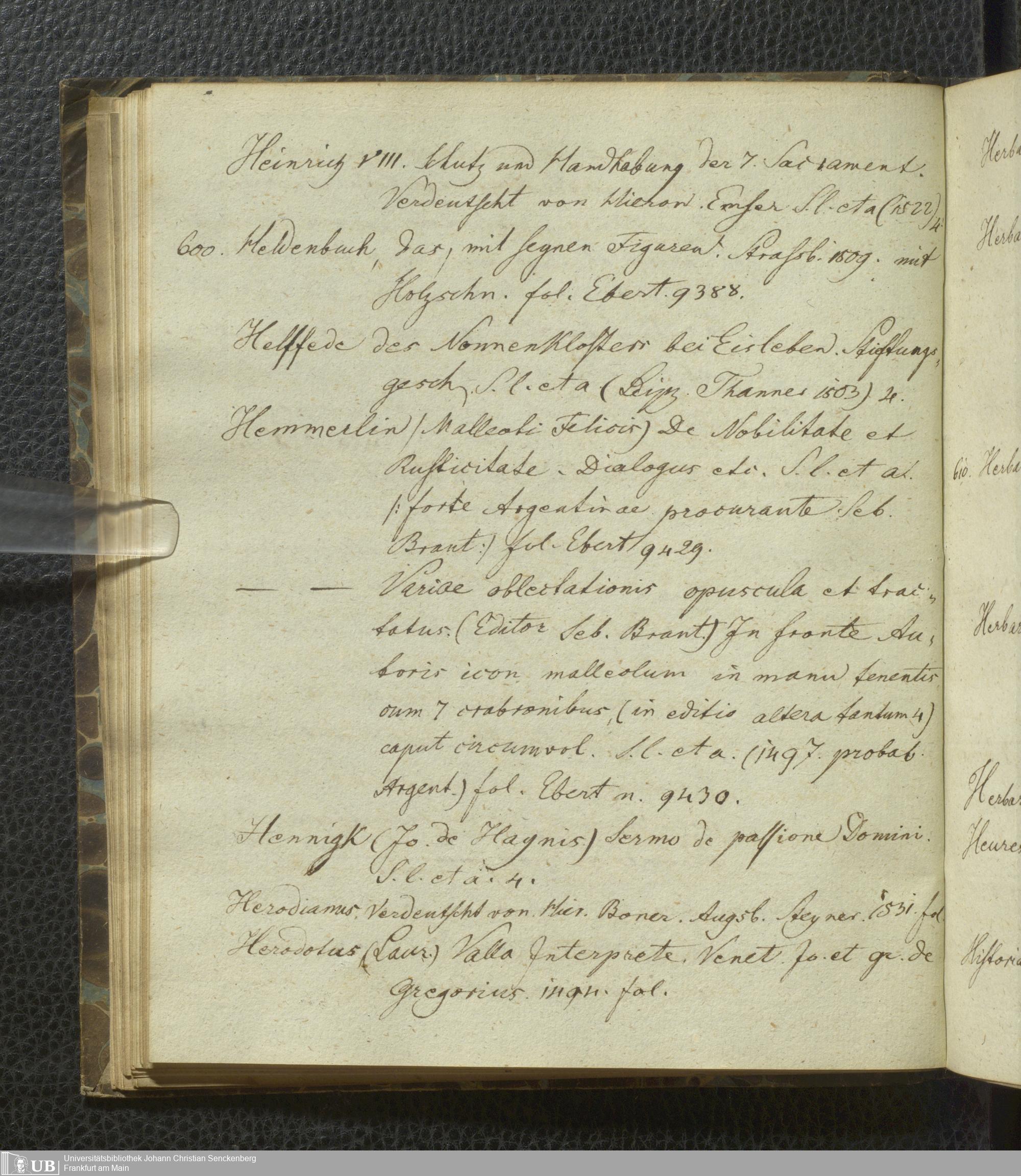 Ms. Ff. G. Kloß VI.3 - Conspectus Memorabilium Bibliothecae Joschianae ad compendium Redactus