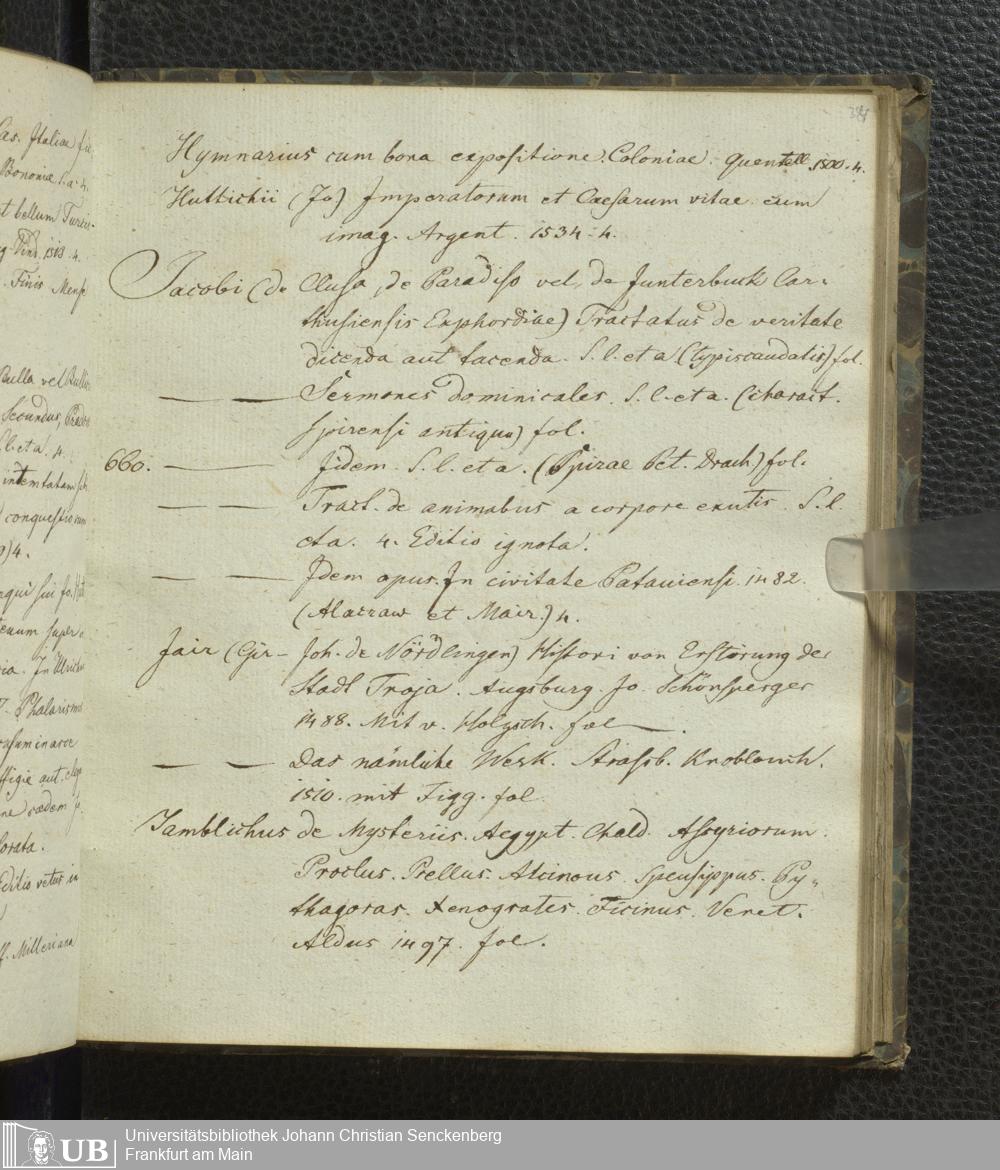 Ms. Ff. G. Kloß VI.3 - Conspectus Memorabilium Bibliothecae Joschianae ad compendium Redactus