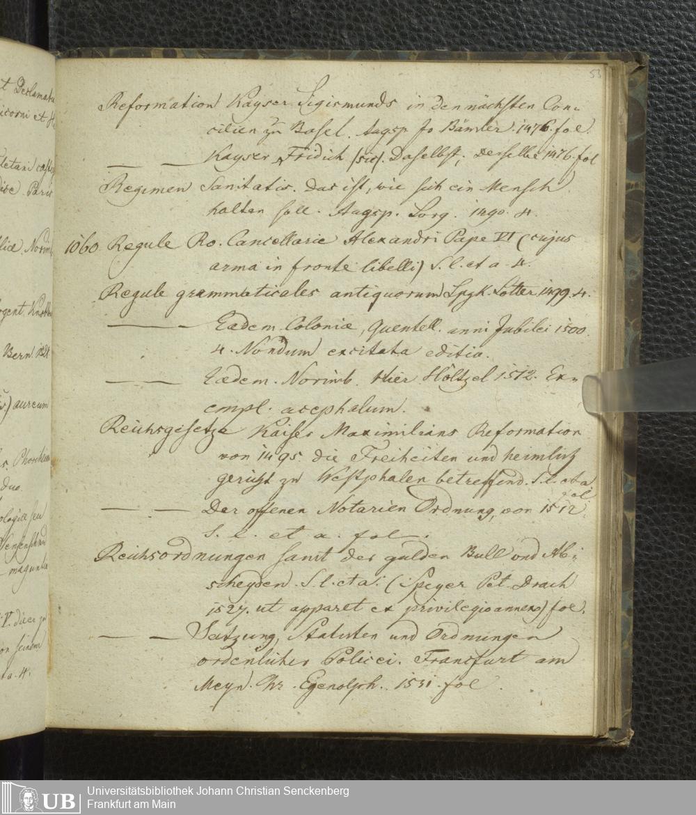 Ms. Ff. G. Kloß VI.3 - Conspectus Memorabilium Bibliothecae Joschianae ad compendium Redactus