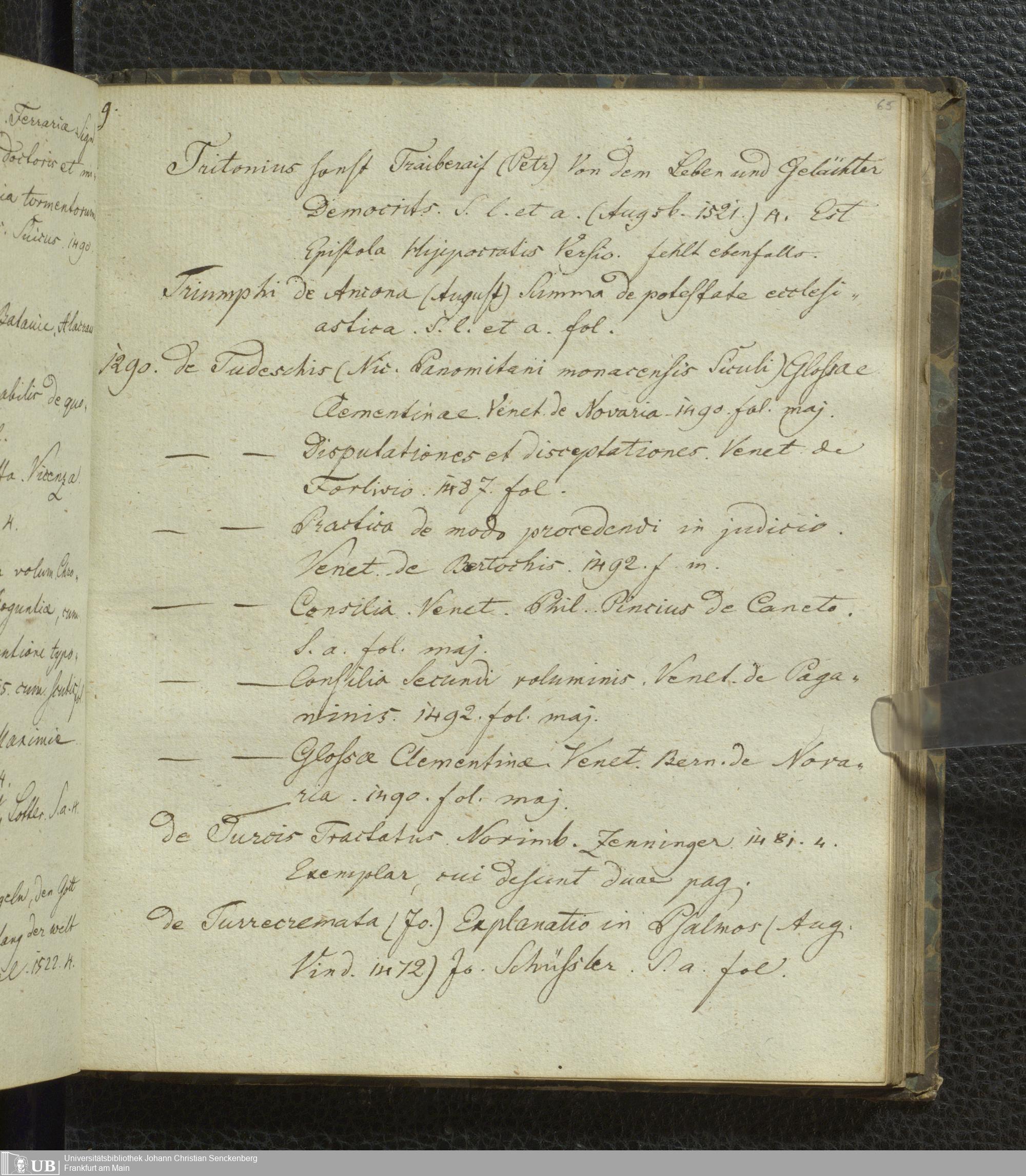 Ms. Ff. G. Kloß VI.3 - Conspectus Memorabilium Bibliothecae Joschianae ad compendium Redactus