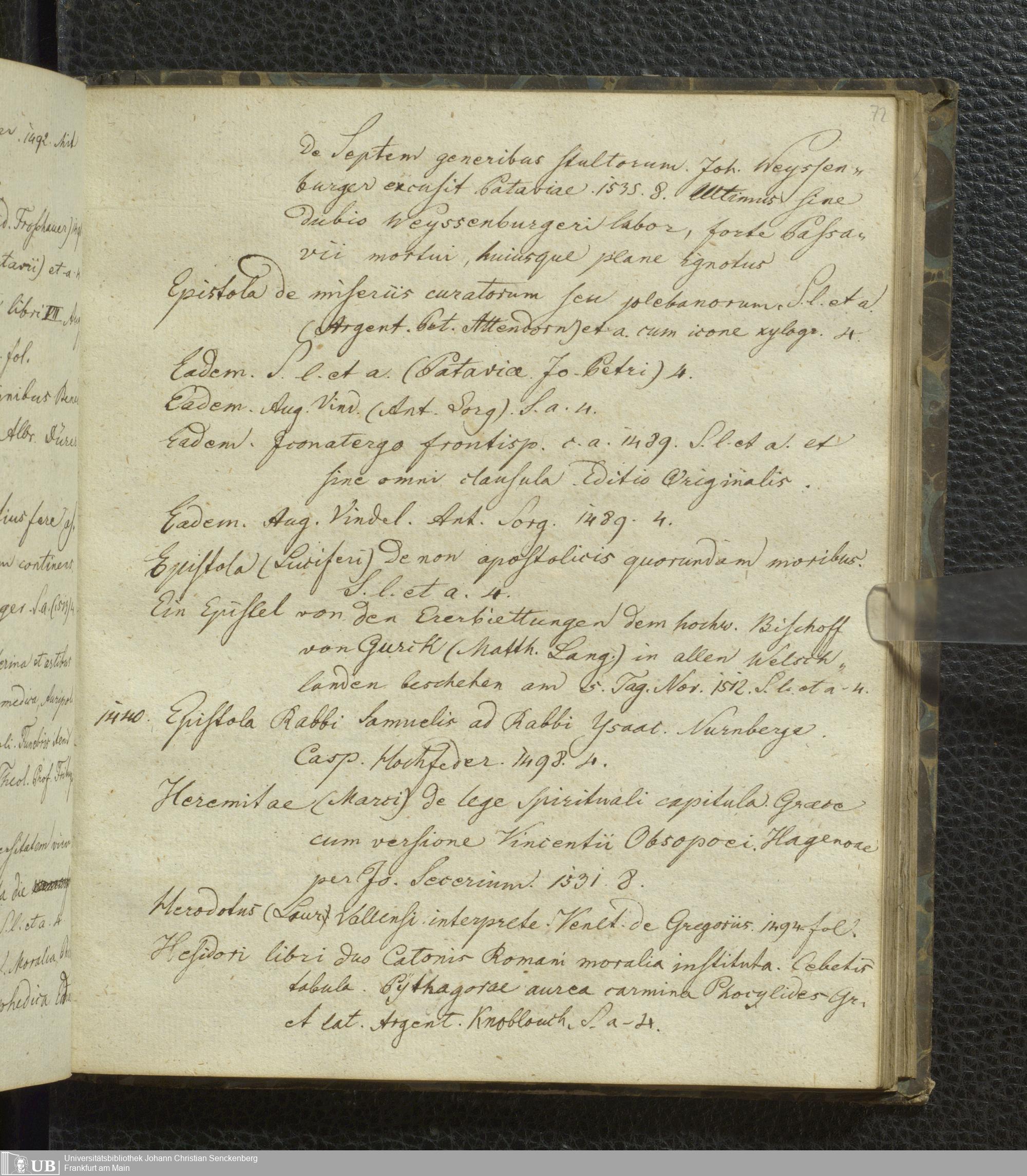 Ms. Ff. G. Kloß VI.3 - Conspectus Memorabilium Bibliothecae Joschianae ad compendium Redactus