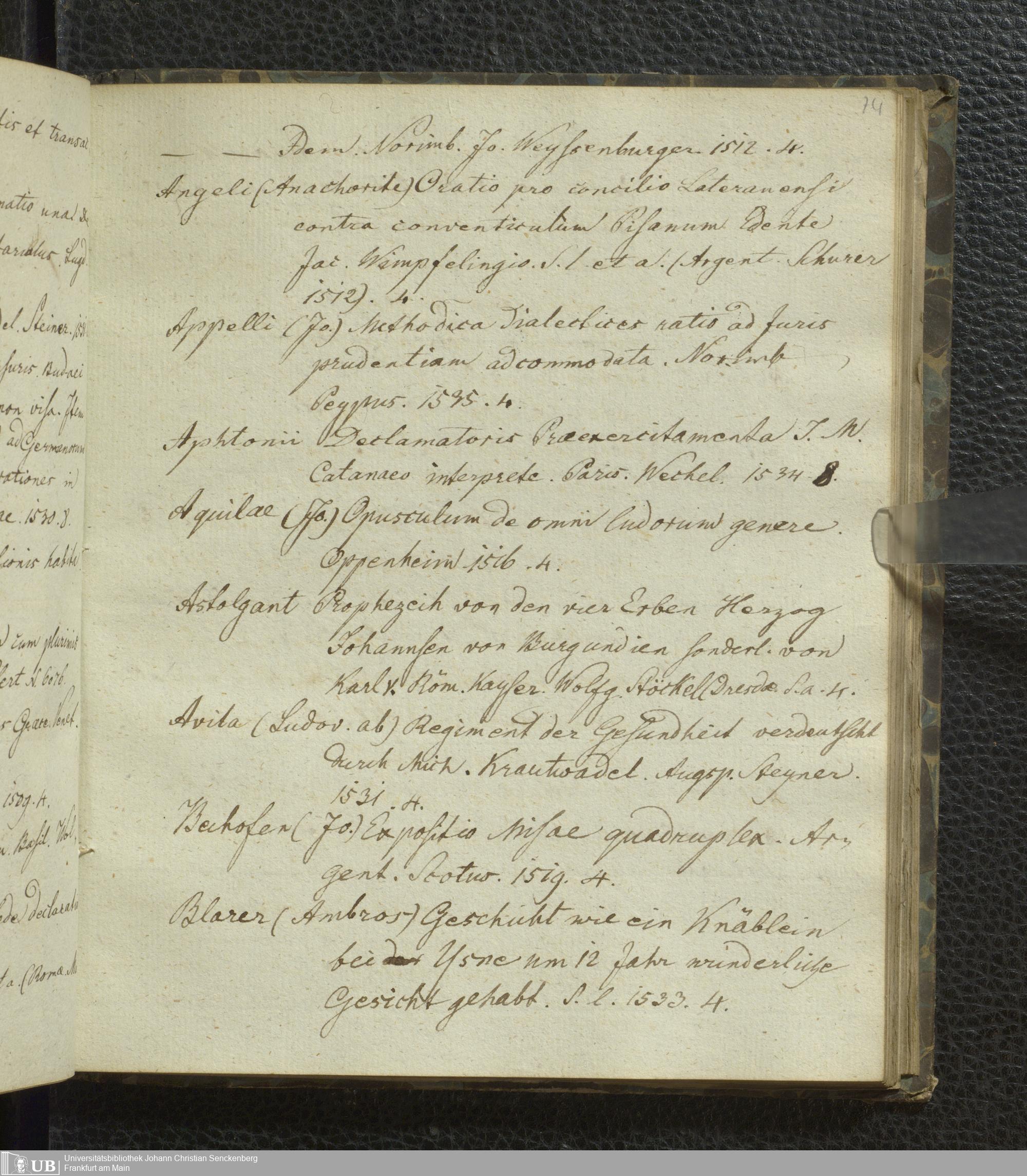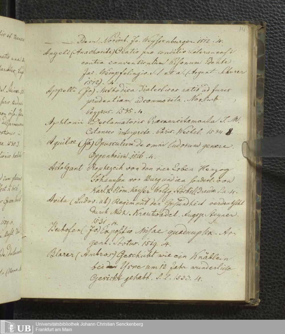 Ms. Ff. G. Kloß VI.3 - Conspectus Memorabilium Bibliothecae Joschianae ad compendium Redactus