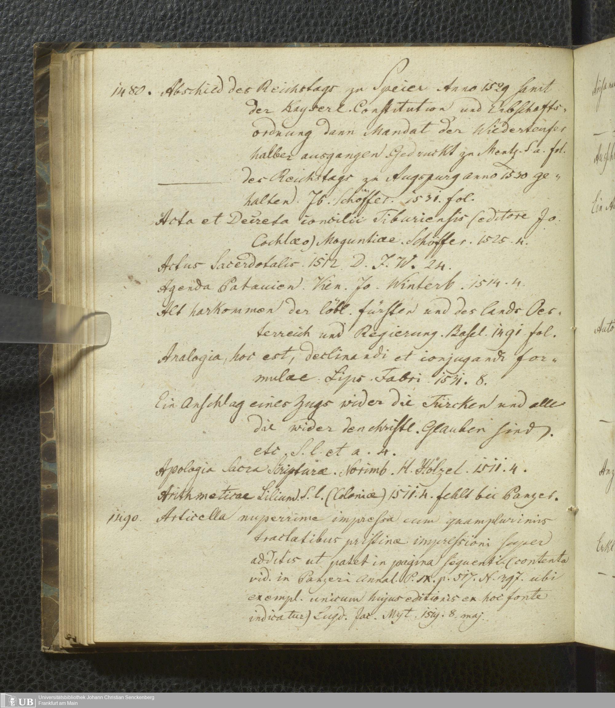 Ms. Ff. G. Kloß VI.3 - Conspectus Memorabilium Bibliothecae Joschianae ad compendium Redactus
