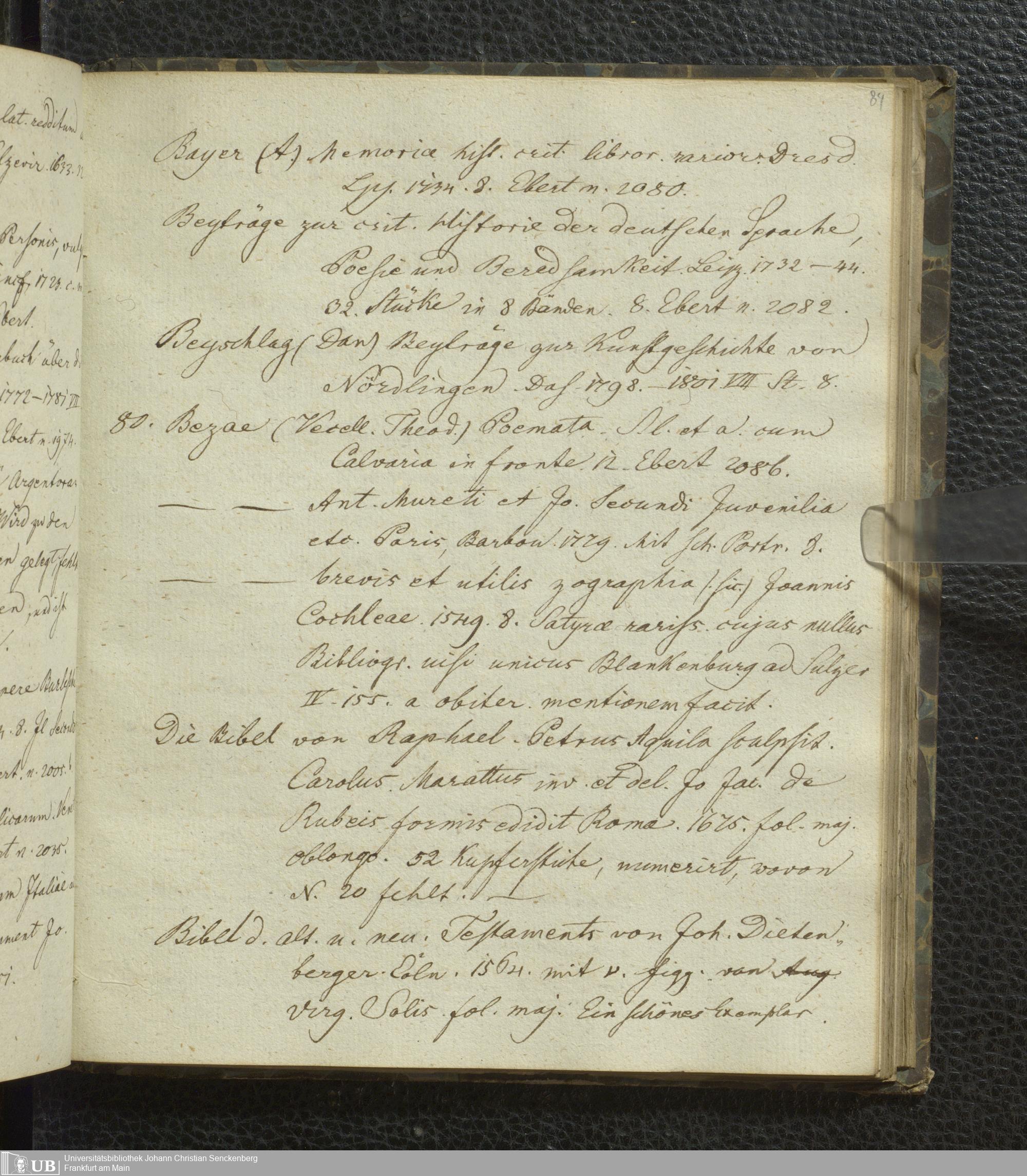 Ms. Ff. G. Kloß VI.3 - Conspectus Memorabilium Bibliothecae Joschianae ad compendium Redactus