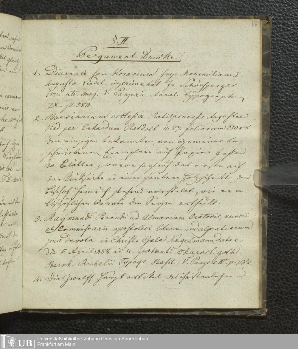 Ms. Ff. G. Kloß VI.3 - Conspectus Memorabilium Bibliothecae Joschianae ad compendium Redactus