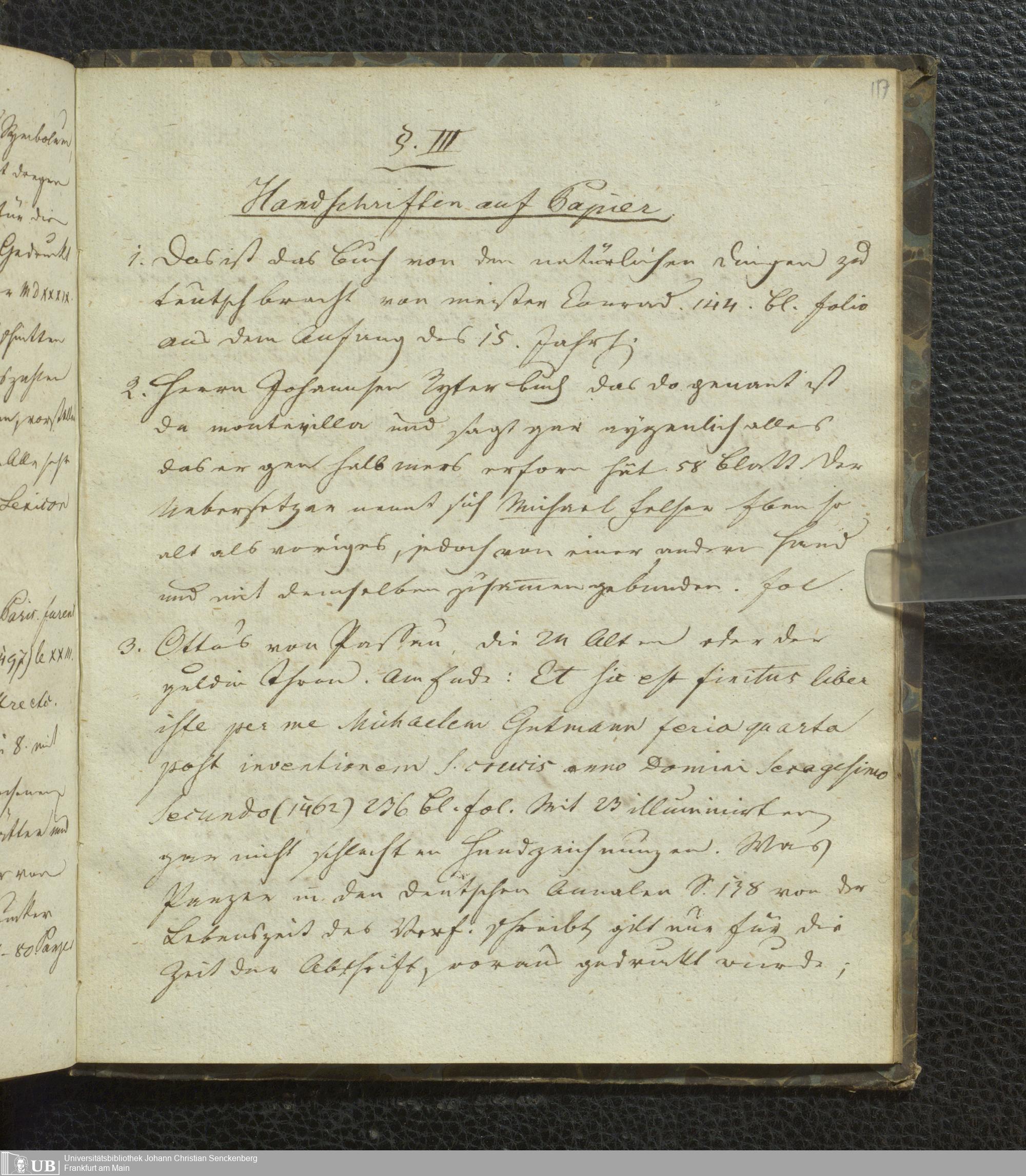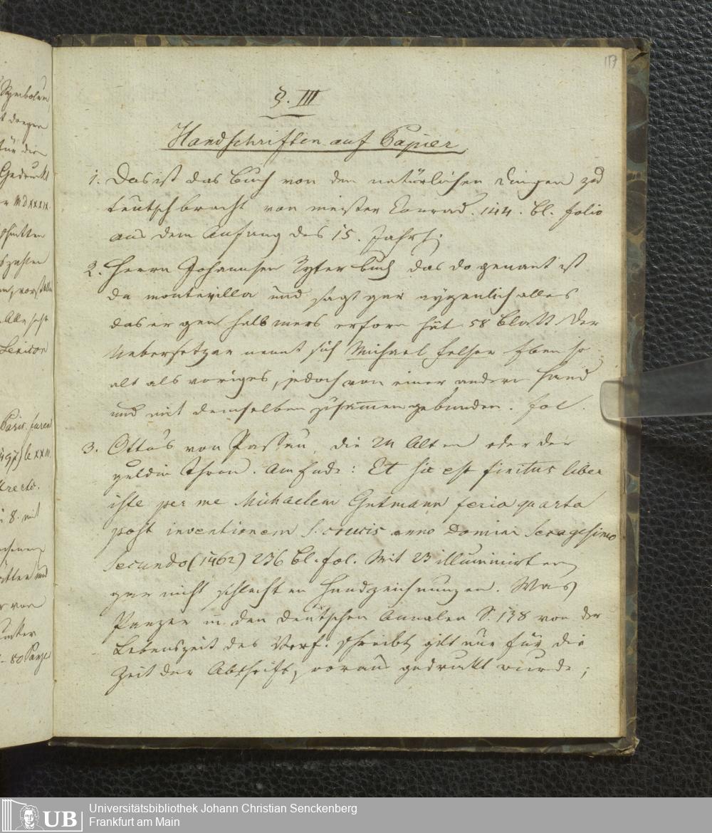 Ms. Ff. G. Kloß VI.3 - Conspectus Memorabilium Bibliothecae Joschianae ad compendium Redactus